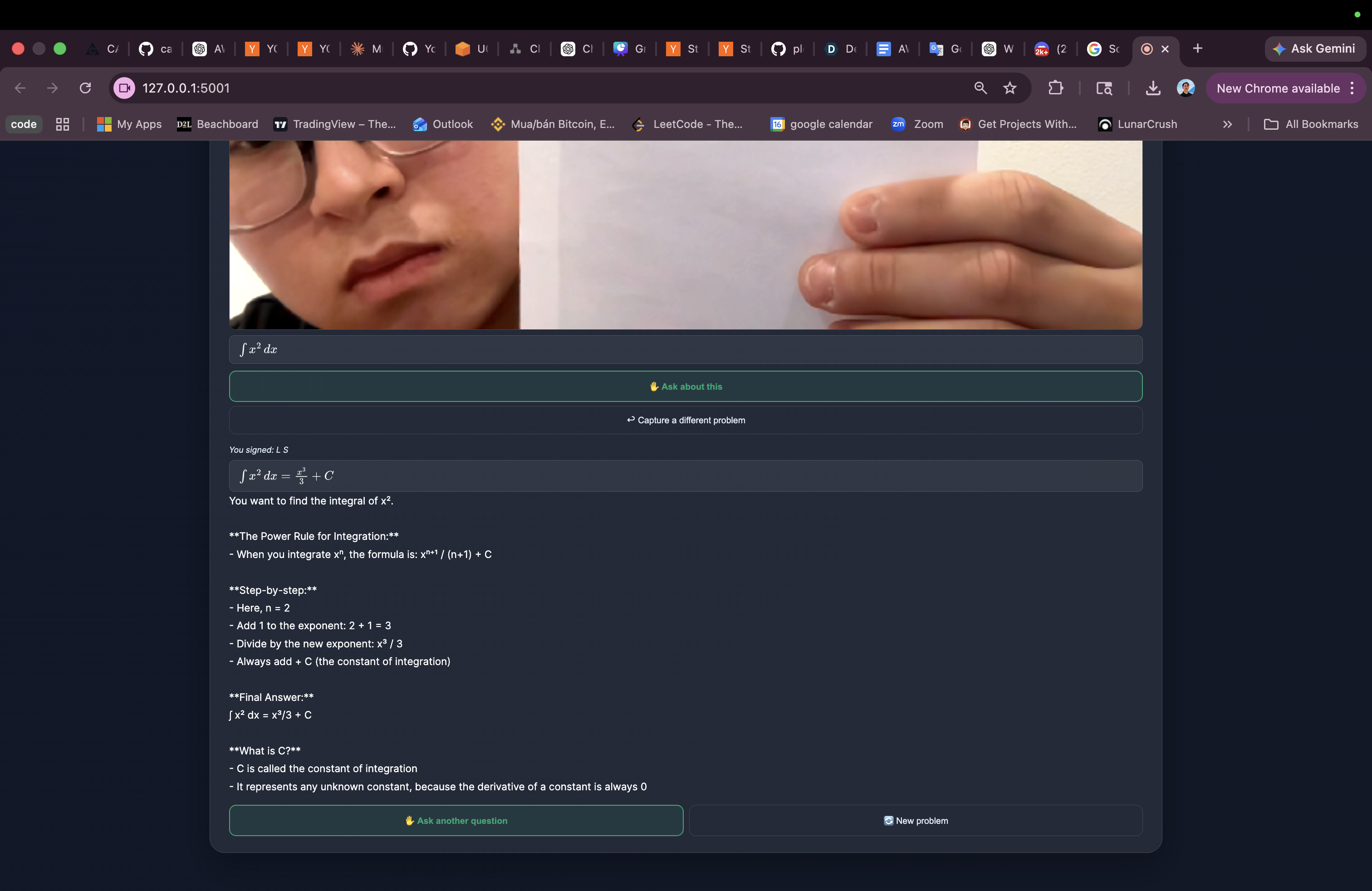 - Point your camera at any equation — the app instantly transcribes it into LaTeX, renders it visually, and generates a plain-English explanation