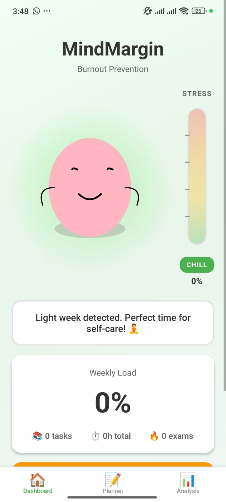 MindMargin is an academic burnout prevention system disguised as a task planner.