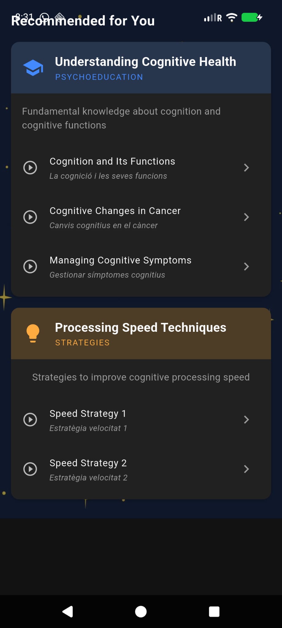 - Personalized Treatment: tailored content and exercises based on assessment results