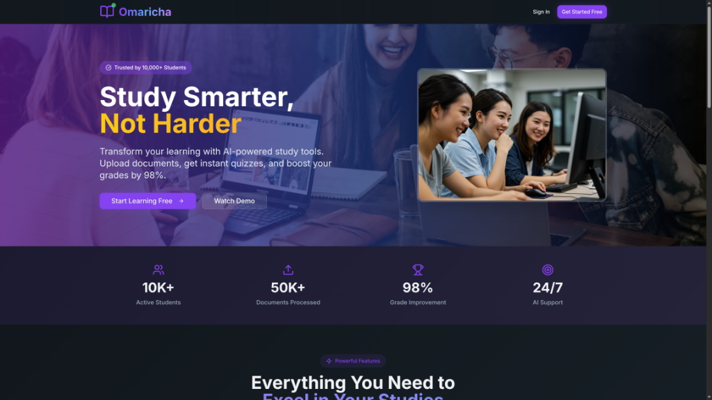 Omaricha is an AI-powered academic assistant that helps students study more effectively. It allows users to: