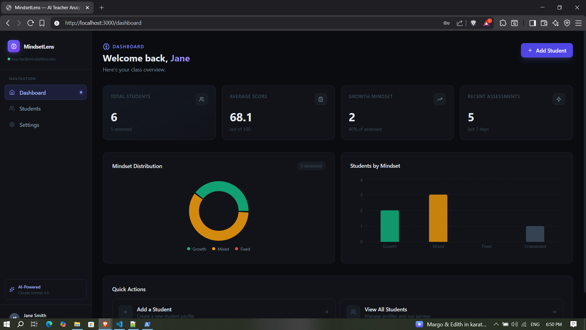 MindsetLens is a teacher-only dashboard where educators can: