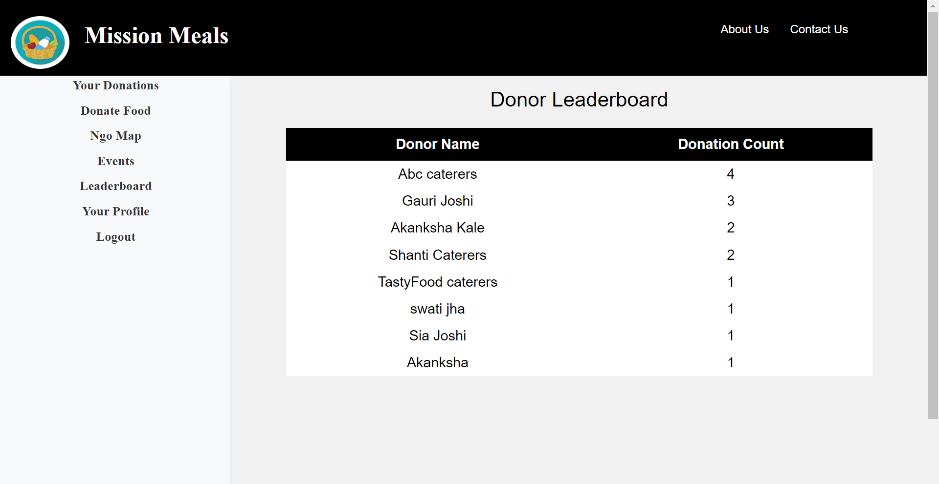 Mission Meals is a web portal that provides a centralized platform for donors to donate food and notify NGOs. On the platform, NGOs can see available donations, accept them, schedule events, and connect with nearby NGOs. One of the wow factors of our project is the donor leaderboard, which encourages more donations and fosters a sense of community among donors.