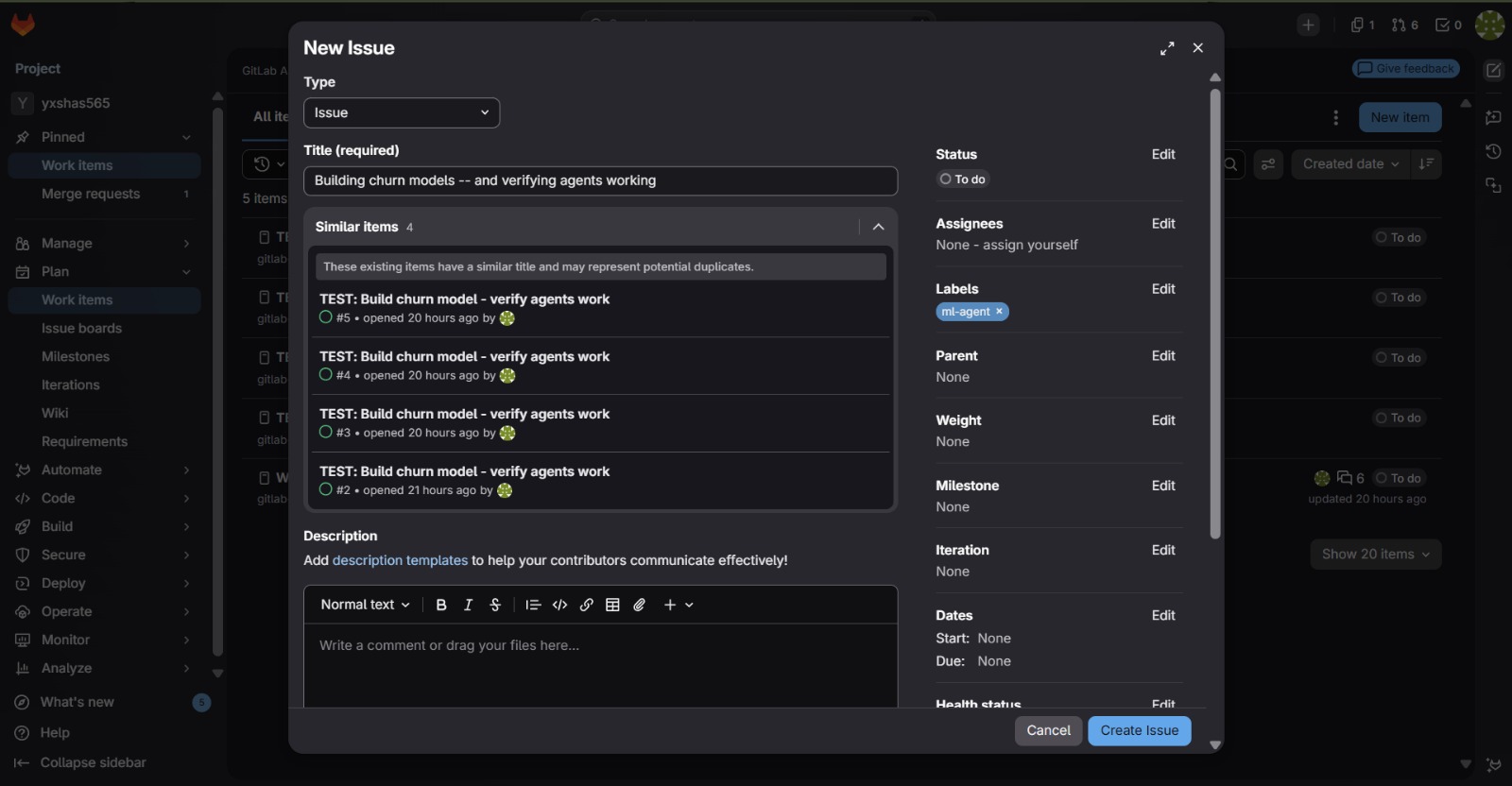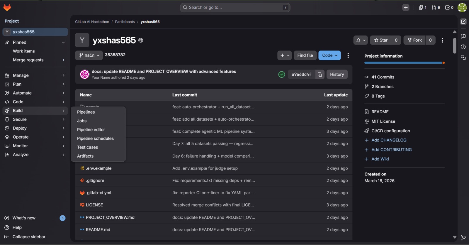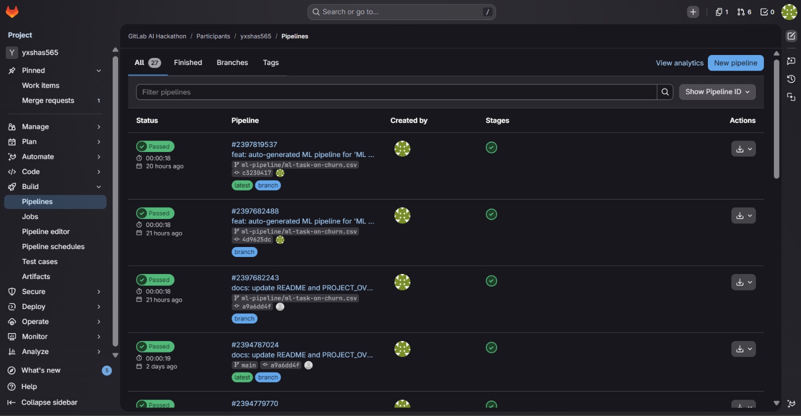 Transforms a GitLab issue into a production-ready ML pipeline in 2 minutes. File an issue with your dataset, and 5 autonomous agents orchestrate the entire pipeline creation — from data analysis to model training to results reporting.