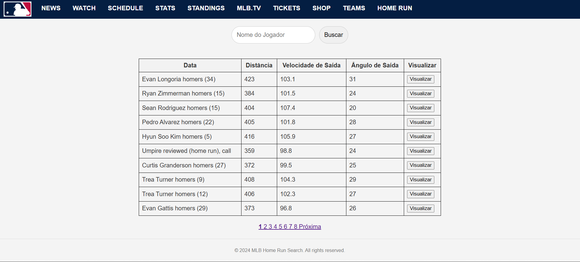 Results Display: The corresponding home runs are displayed in a paginated table.