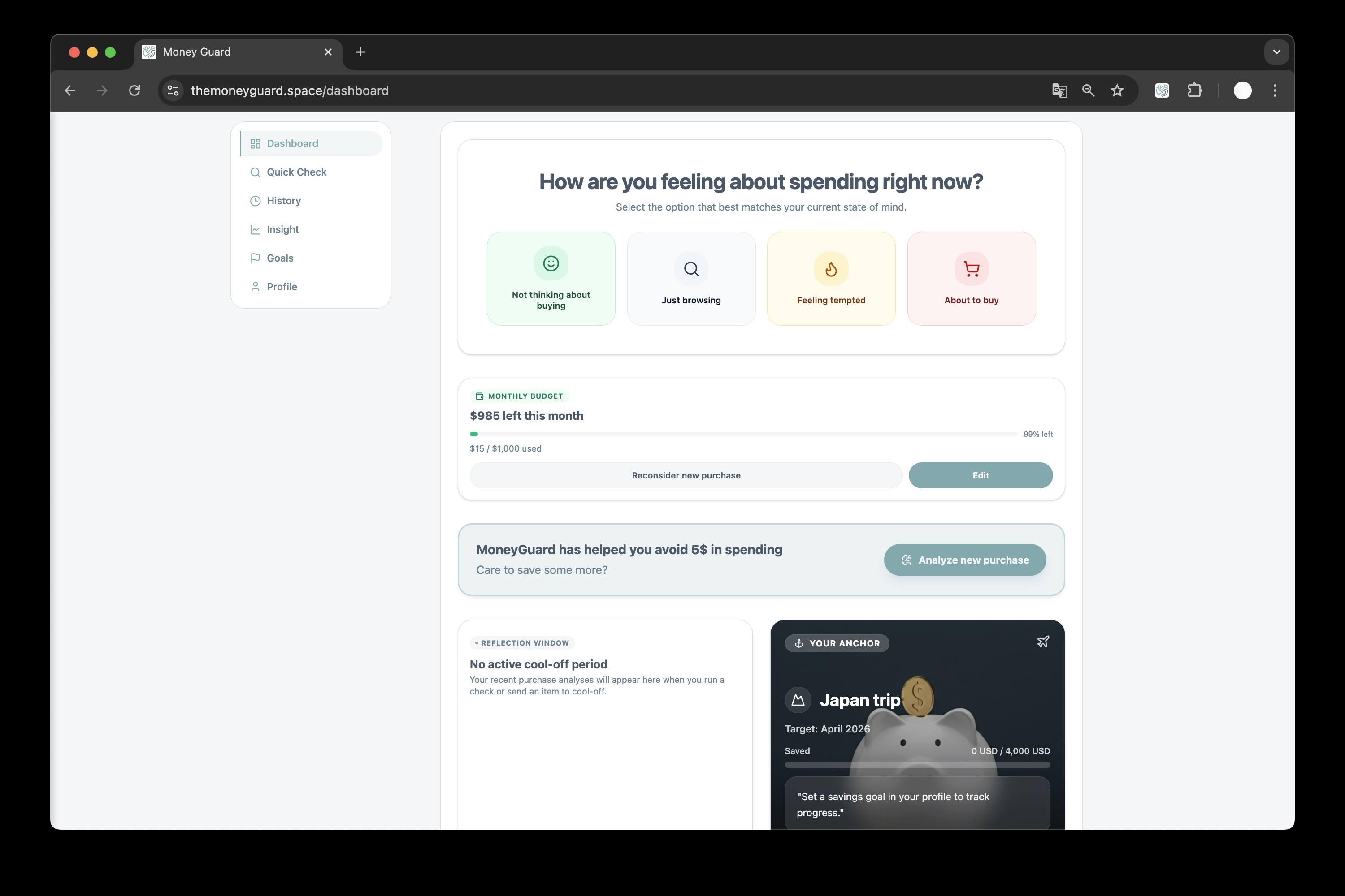 MoneyGuard — Evidence-based behavioral intervention for your wallet.