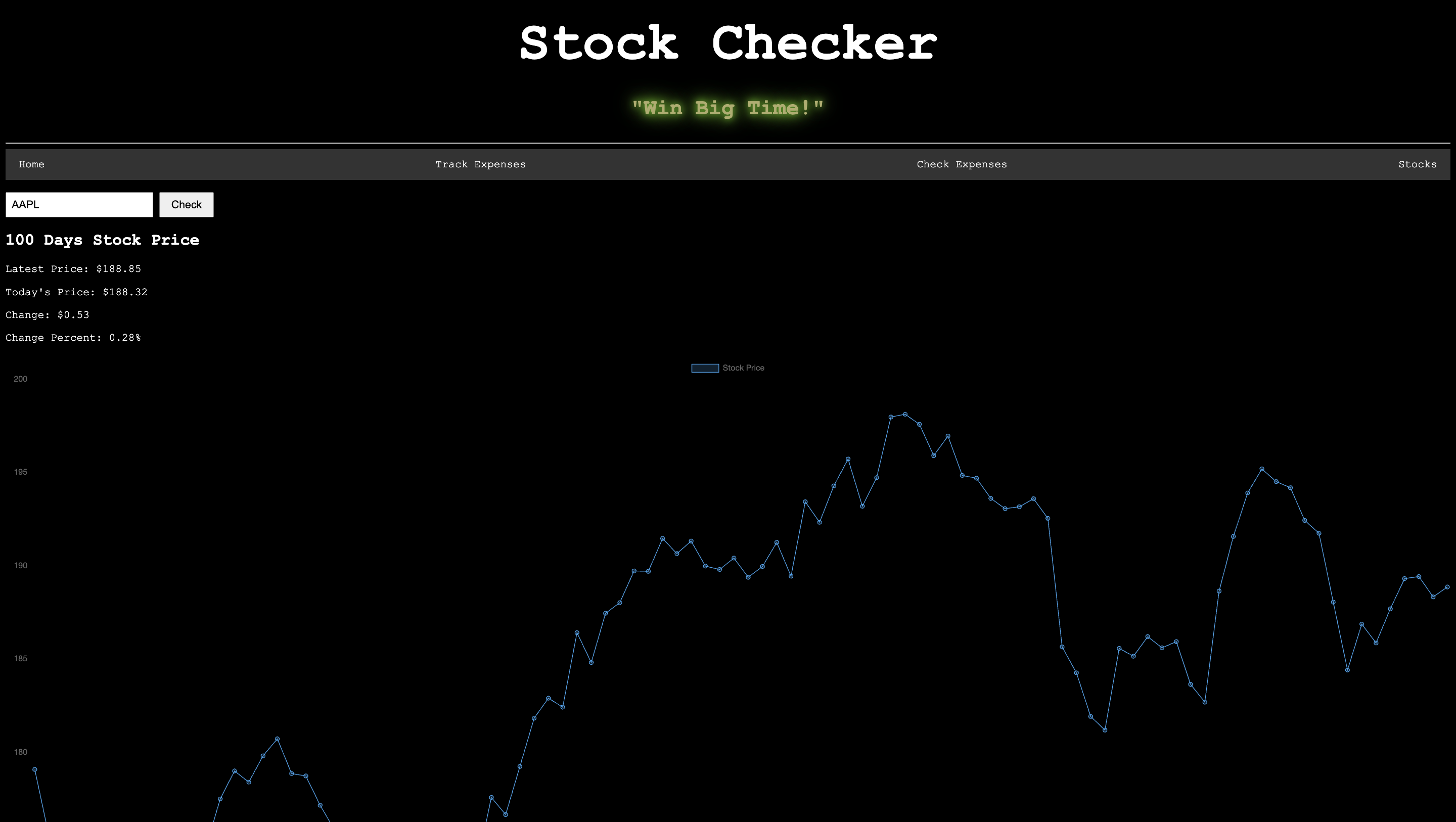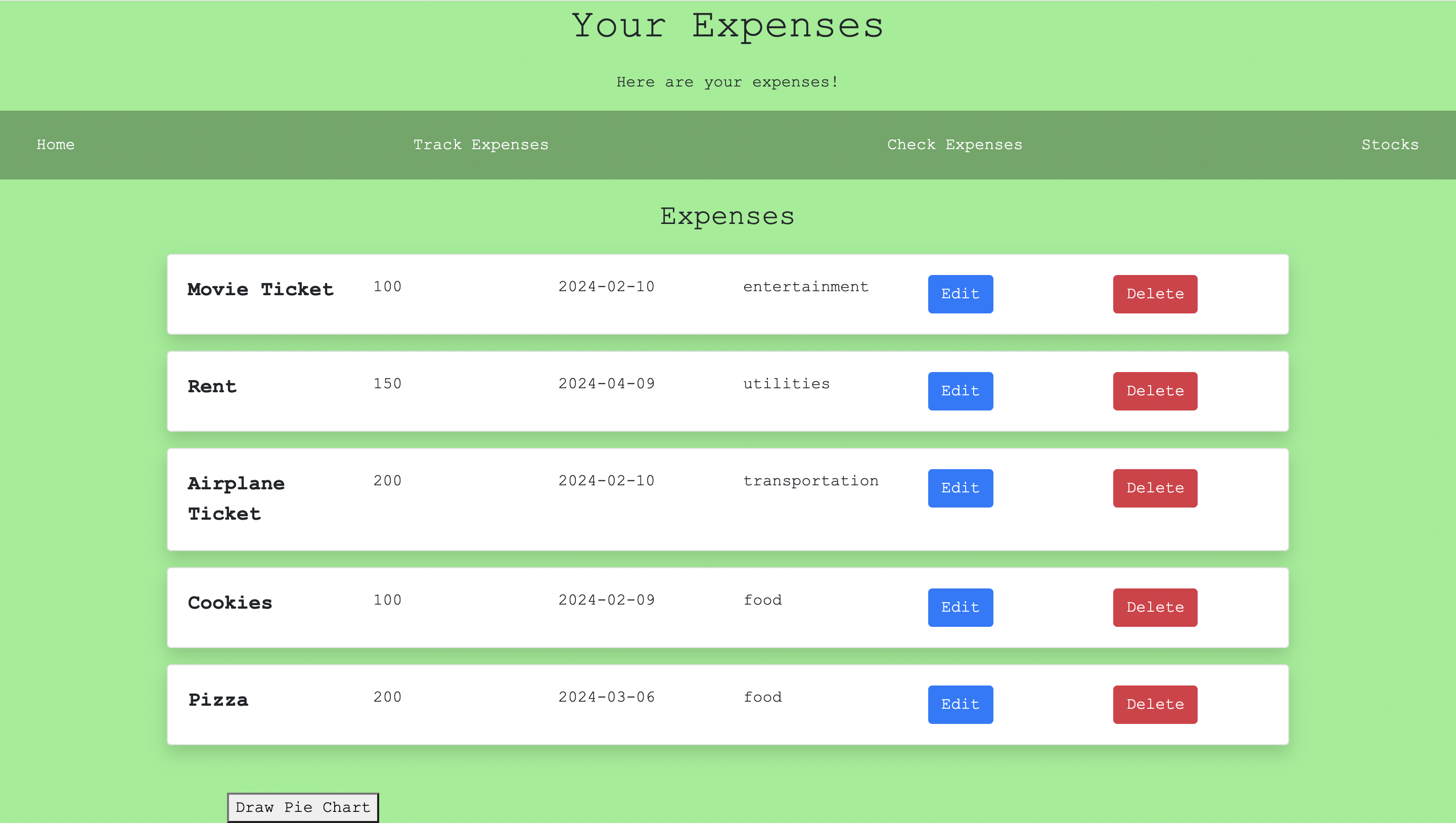 The first challenge was linking the front-end to the back-end, which required some work. The second challenge was creating our database for users to log in and out with authentication, to protect their privacy, while storing the expenses of users for visualization and analysis. The third challenge was to input stock-checking API, allowing users to keep track of their stocks.