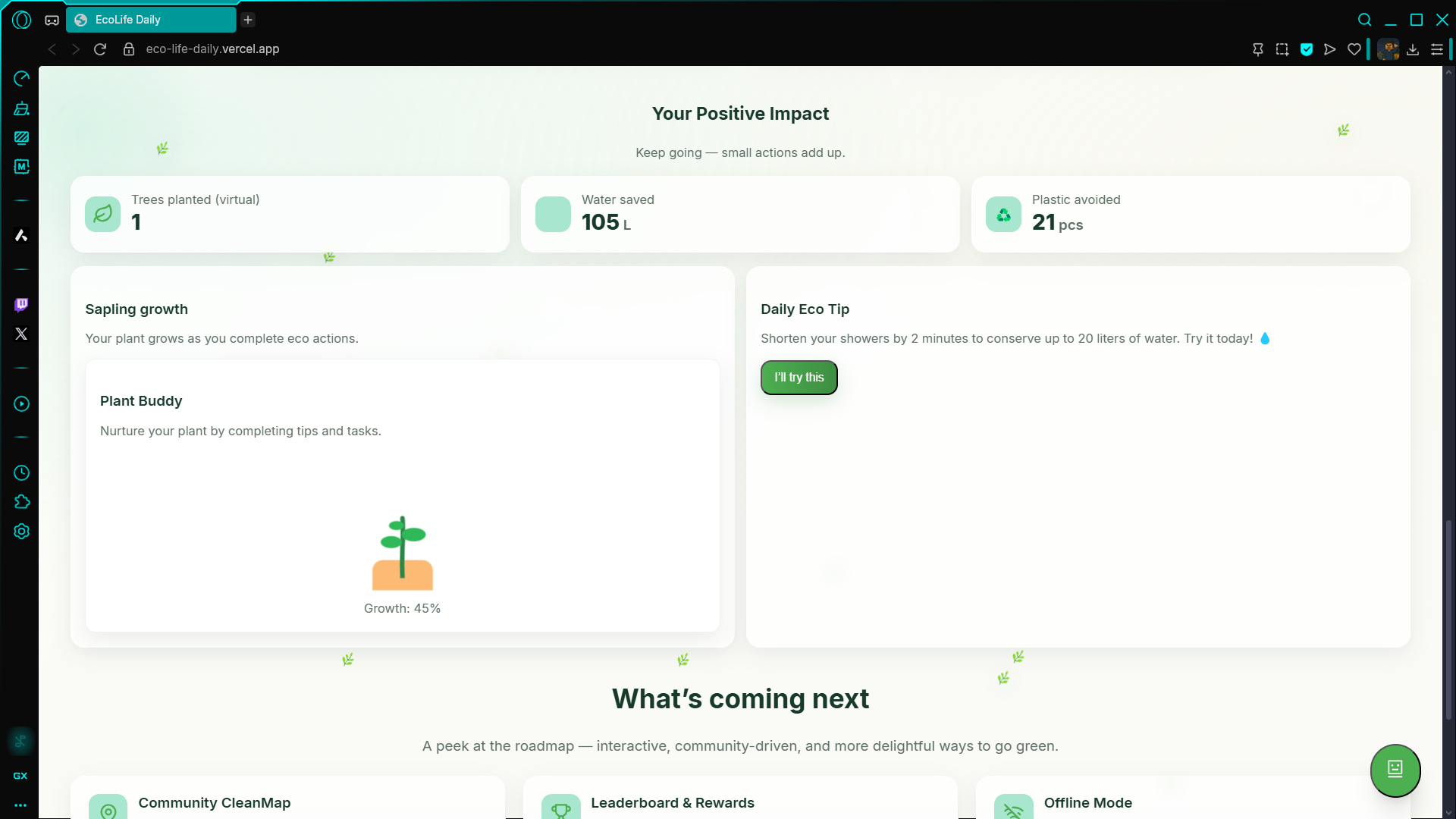 - 🌿 PlantBuddy that grows with your eco-impact