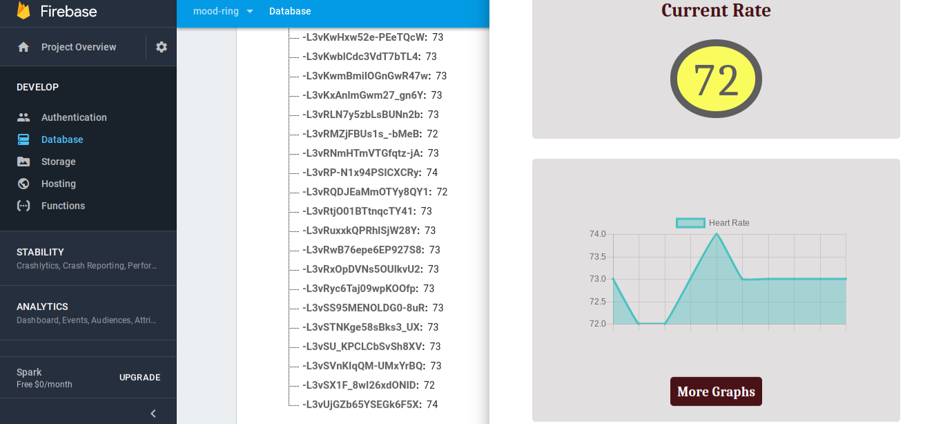 Each level of connection was exciting. Watching the sensor spit out data in real time was a huge thrill. Then watching Firebase accept it in real time was magic ... then watching the UI render it ... and the most exciting thing ... watching a chart update in real time. When you've struggled for dozens of hours struggling to build ways to get electronics to talk to one another, that perfect sync is nothing short of amazing.
