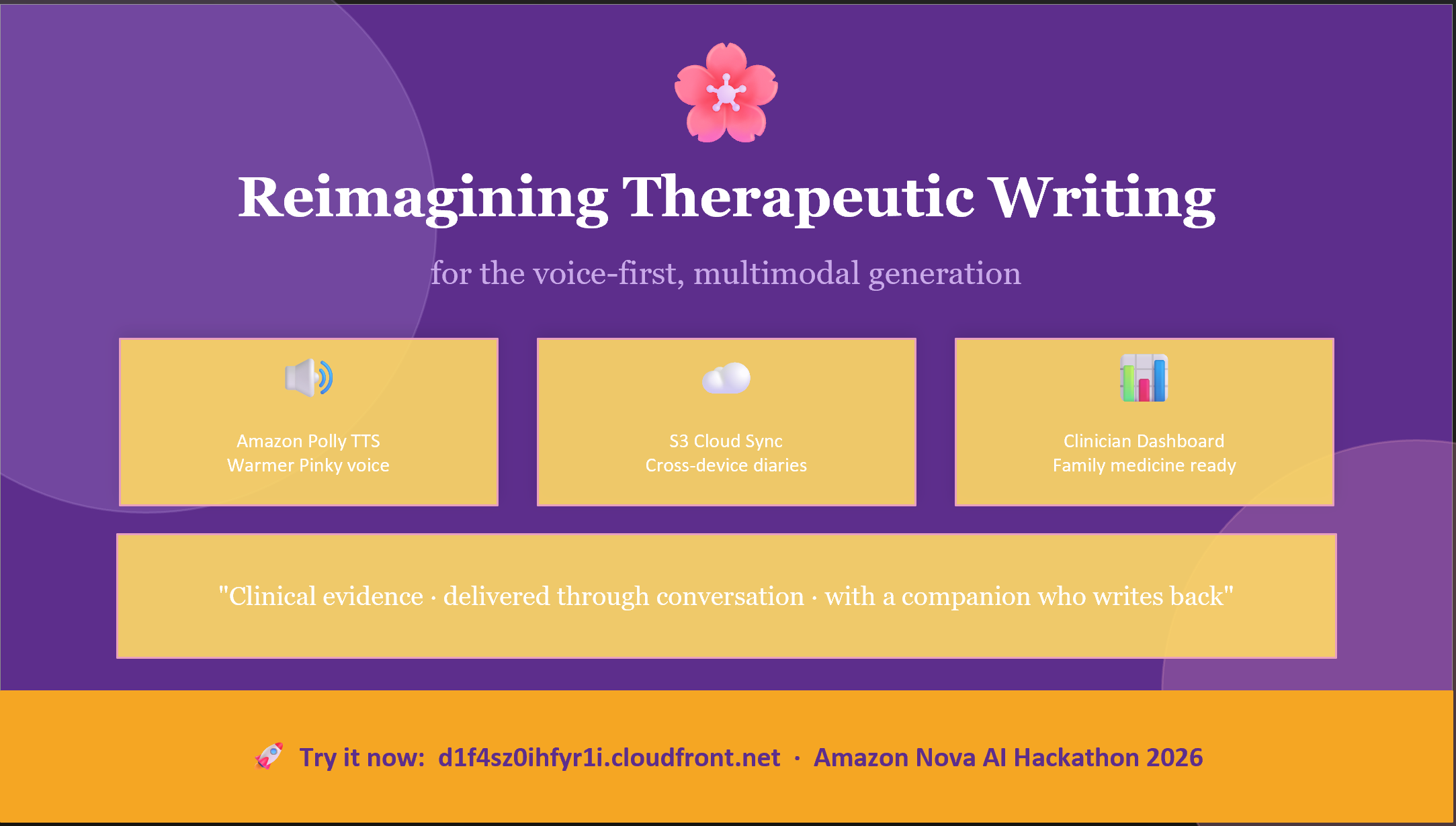 MoodBloom reimagines therapeutic writing for the voice-first, multimodal generation: clinical evidence, delivered through conversation, with a companion who writes back — powered by Amazon Nova, at the moment you need it most.