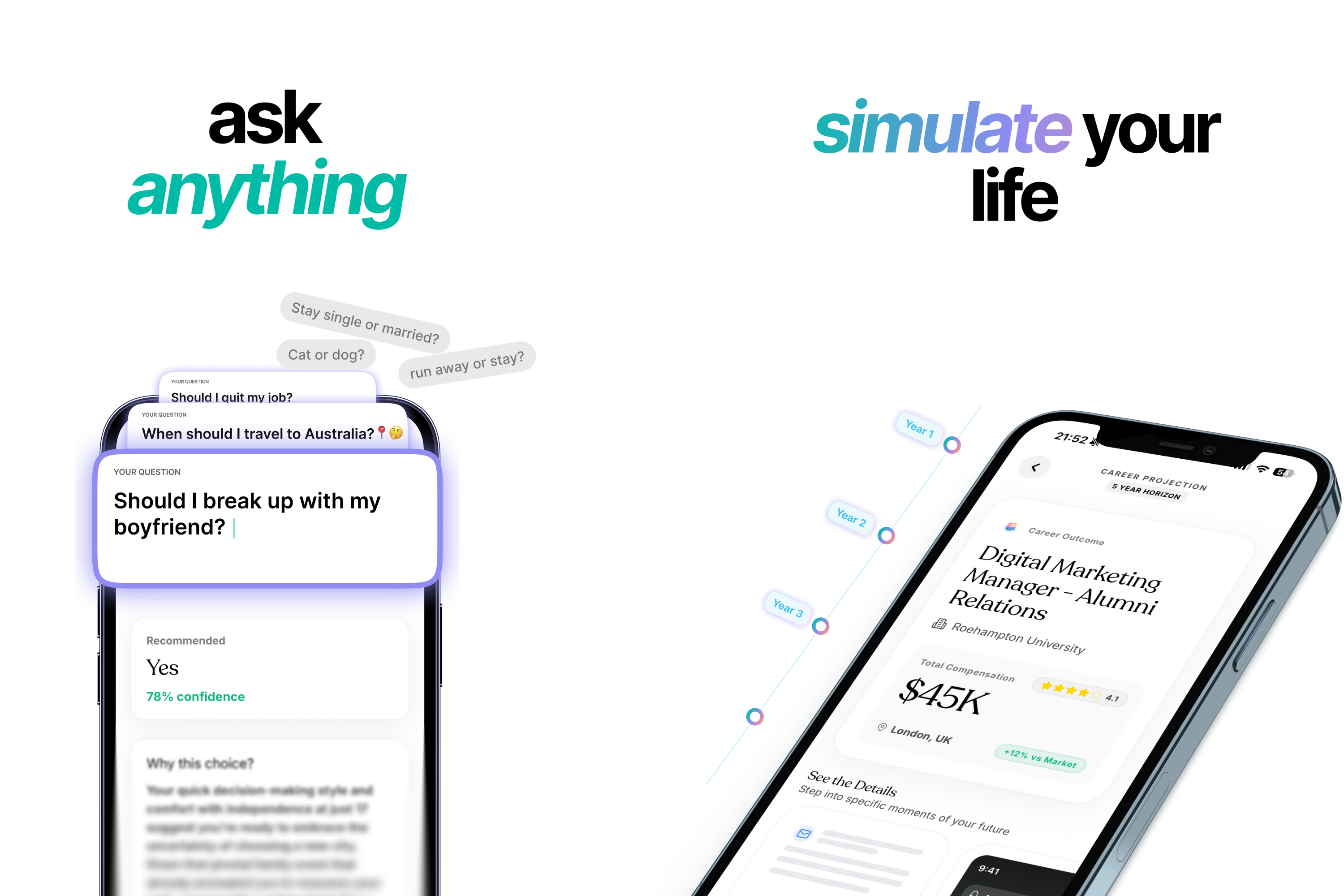 Mora also lets users run life simulations to explore different paths and outcomes. Recently, we added a Dream Self feature where users define who they want to become, and Mora provides small daily actions to help close the gap over time.