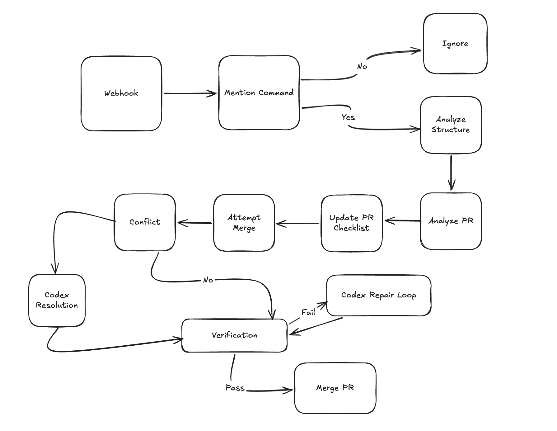 I built a Github Bot which when mentioned in the comments of Pull Requests will resolve all of your merge conflicts. Goal isn't to take the easy steps and get the Pull Request through but analyze design decisions and build around what makes the most sense.