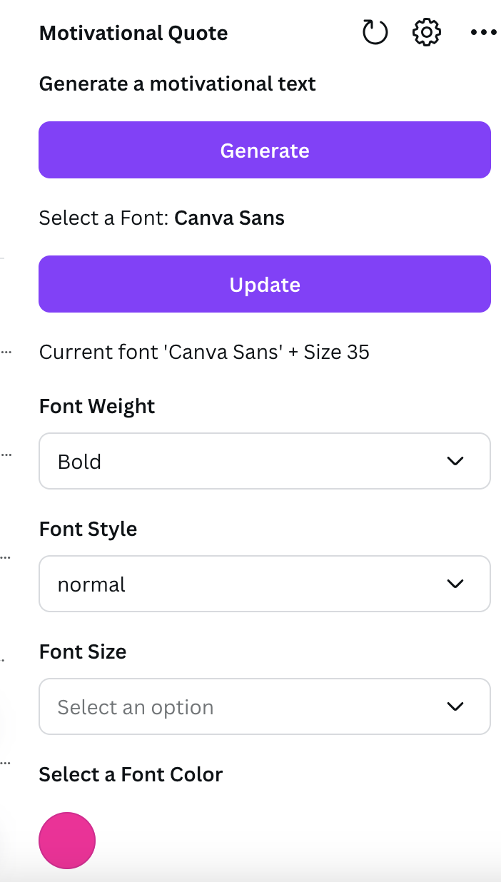 One main challenge was to figure out where to store the Open API key as it involves retrieving and showing it in the web browser. Amazon Lambda with Node.js and useful packages with encryption and decryption capabilities are used to retrieve the key and display motivational text. There were challenges with front-end to properly display the texts. Canva SDK with rich text and image features using Typescript React helped to generate text in different font colors, weights and style.