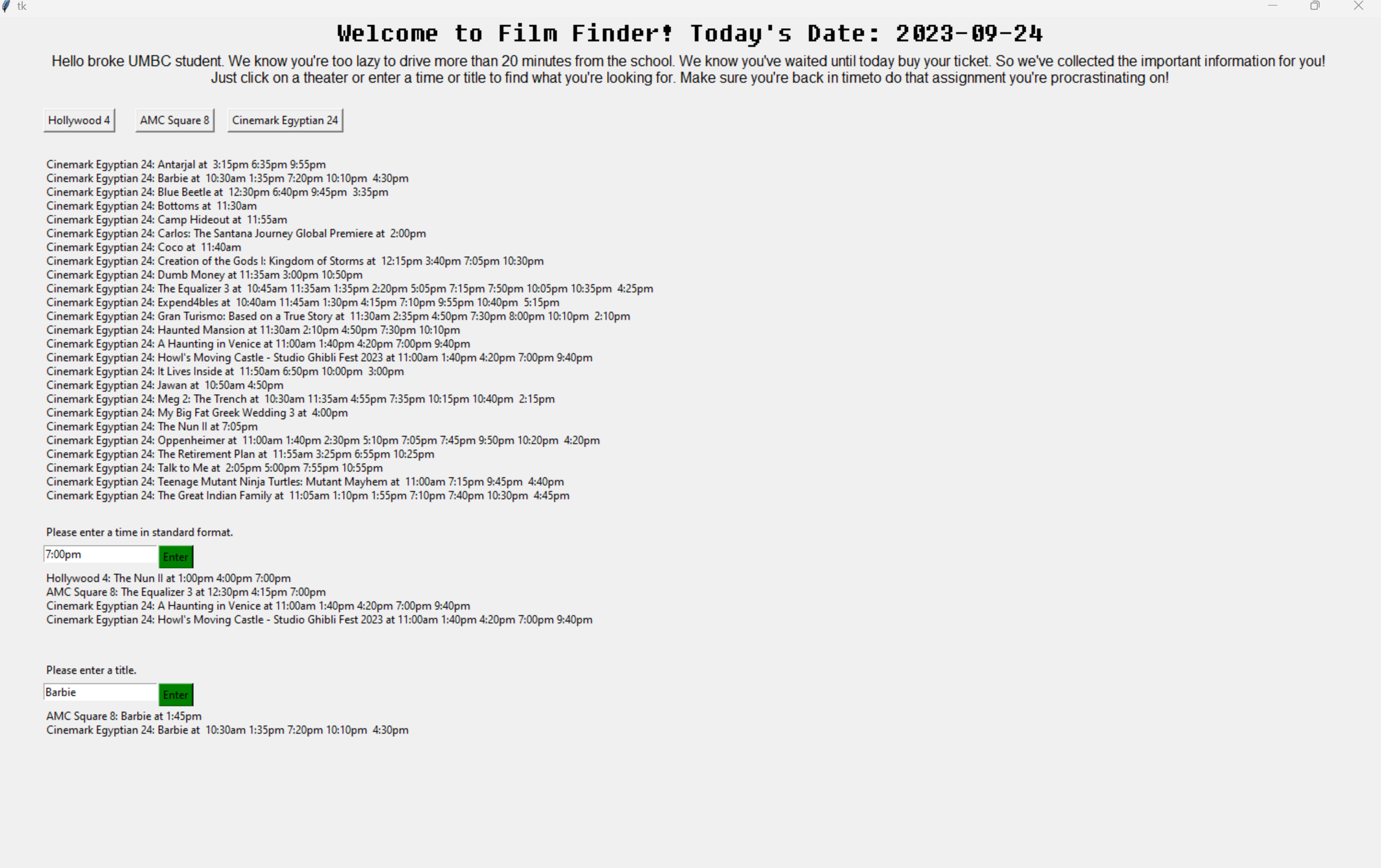 - We learned how to scrape a website and use Tkinter to design GUIs, both of which were new skills. We built our project by first brainstorming and mapping out our idea. Next, we did research on how to scrape a website and programmed our code. When we were done relatively early, we decided to make the code more visually pleasing by using Tkinter. Learning how to use this took time and a lot of trial and error.