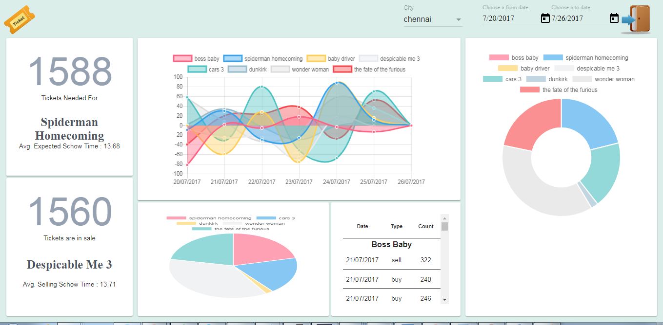This application uses Google Authentication. This web application gives you more insight from the data we have received, the trend chart of what the people likes to watch and highest number of tickets are in need and highest number of tickets they want to sell