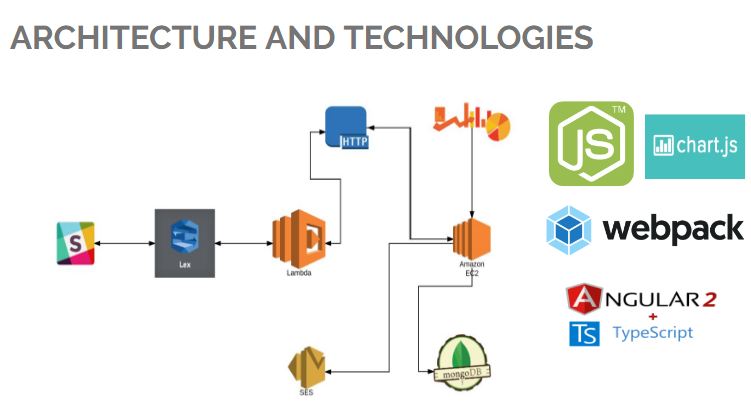 Technology We have used: AWS LEX AWS LAMBDA AWS SES AWS EC2 Mongo Database Node JS Analytics Web App (MEAN stack) Angular 4.0