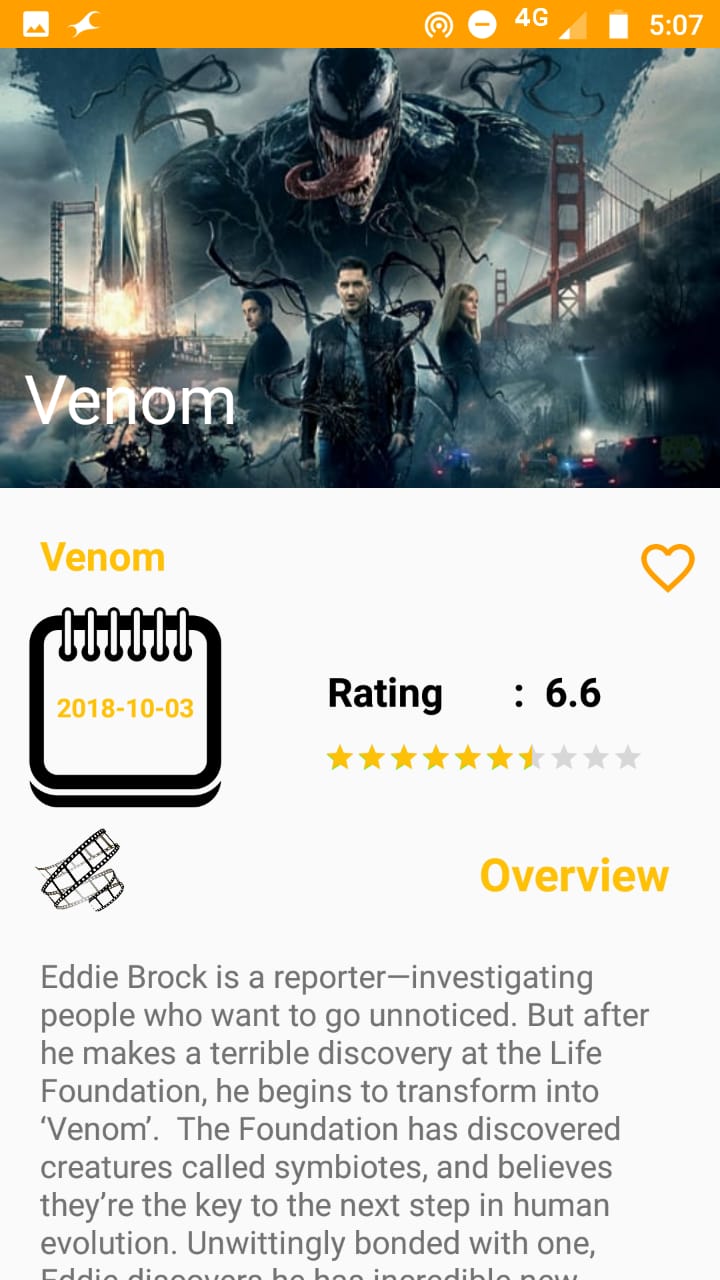 - You’ll also allow users to mark a movie as a favorite in the details view by tapping an image(heart).