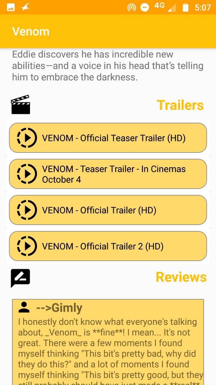 - You’ll allow users to view and play trailers ( in the youtube app).