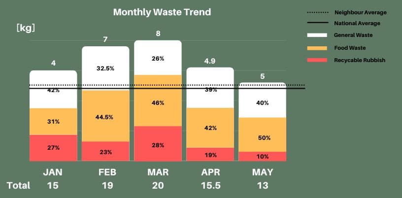 *The neighbour average is derived based on the average waste of similar housing types using Mr. Bin within a block or street for landed premises.