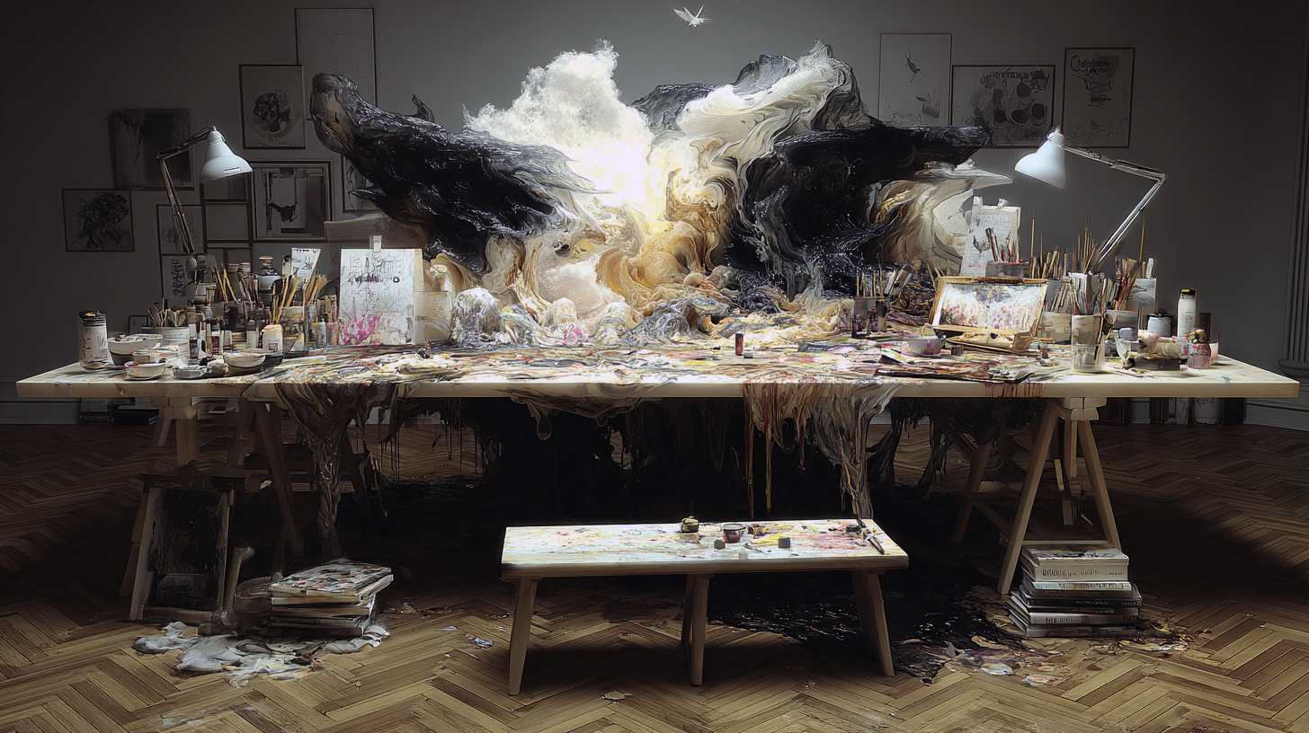 Inspired by the creative struggle of anyone who is a creative, weather it is writers, artists, designers - anyone who creates - for this project I also explore themes of mental health, privilege, self doubt and creativity in a semi horror environment.