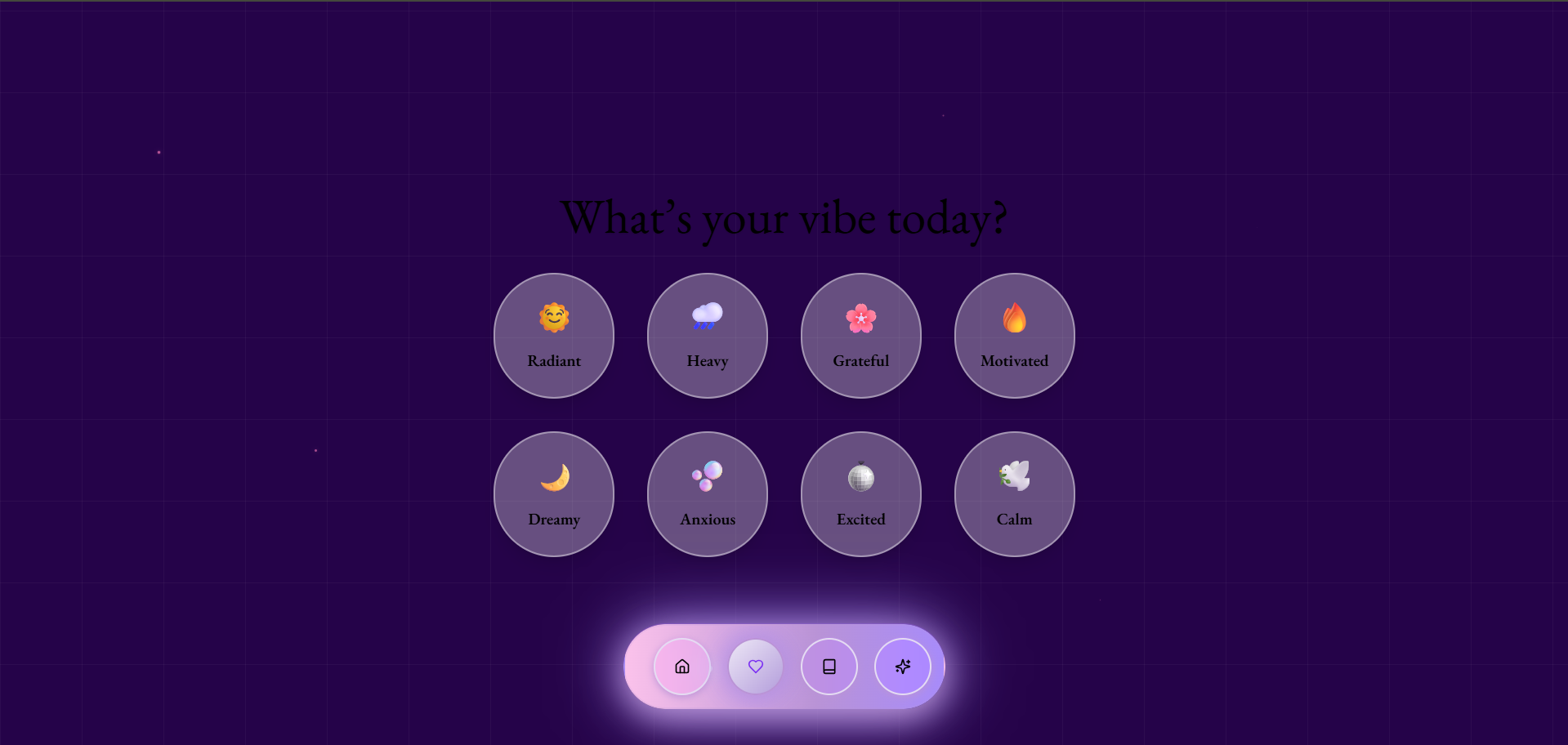 Select their current vibe with an intuitive mood selector 🌙☀️🕊️ Unlock a custom-designed diary theme based on their mood Write and revisit journal entries, saved locally per mood Track emotions over time through mood tagging Flip through their diary in an immersive, animated experience Soon: Auto-generated moodboards, poems, outfit inspirations, and playlists using AI and Spotify API (planned but not yet integrated due to time constraints)