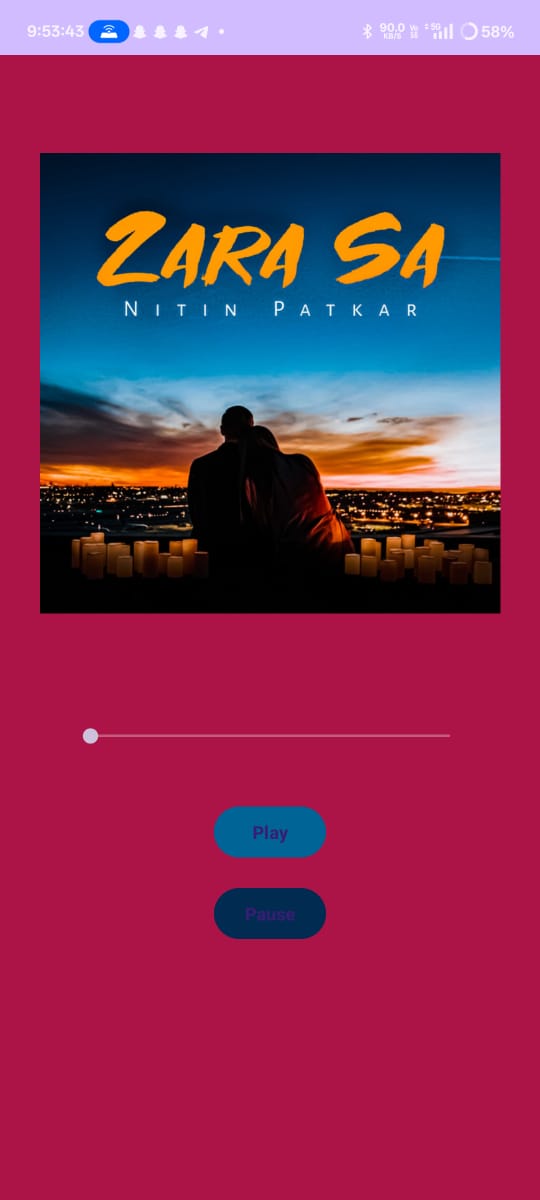 What It Does The app plays the song "Zara Sa" with a single tap, providing a seamless and enjoyable listening experience. It focuses on simplicity, speed, and high-quality audio playback without unnecessary complexities.