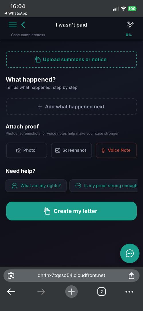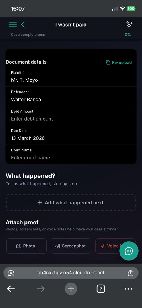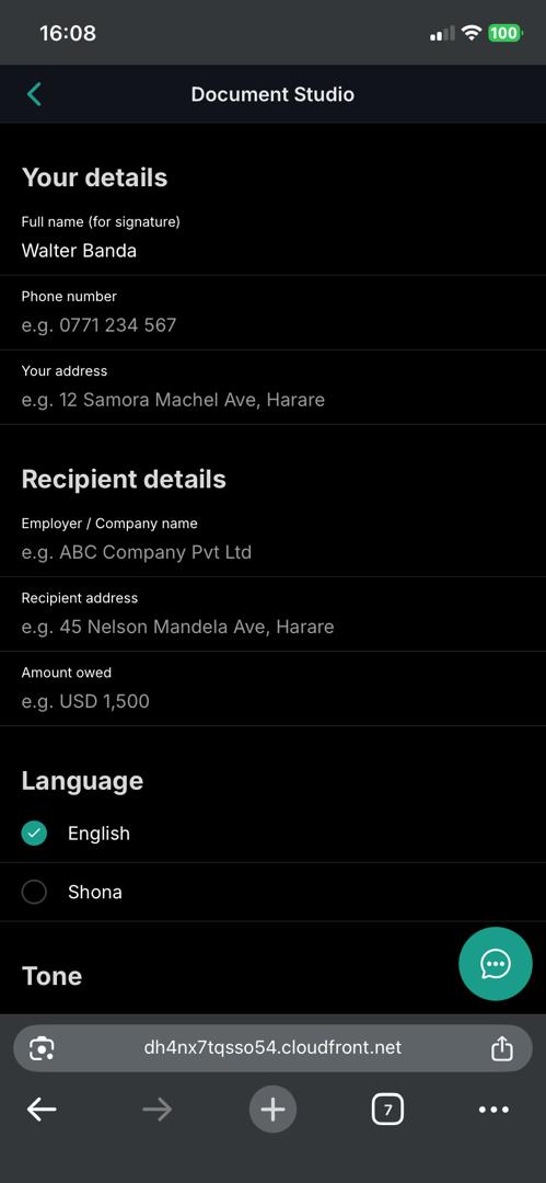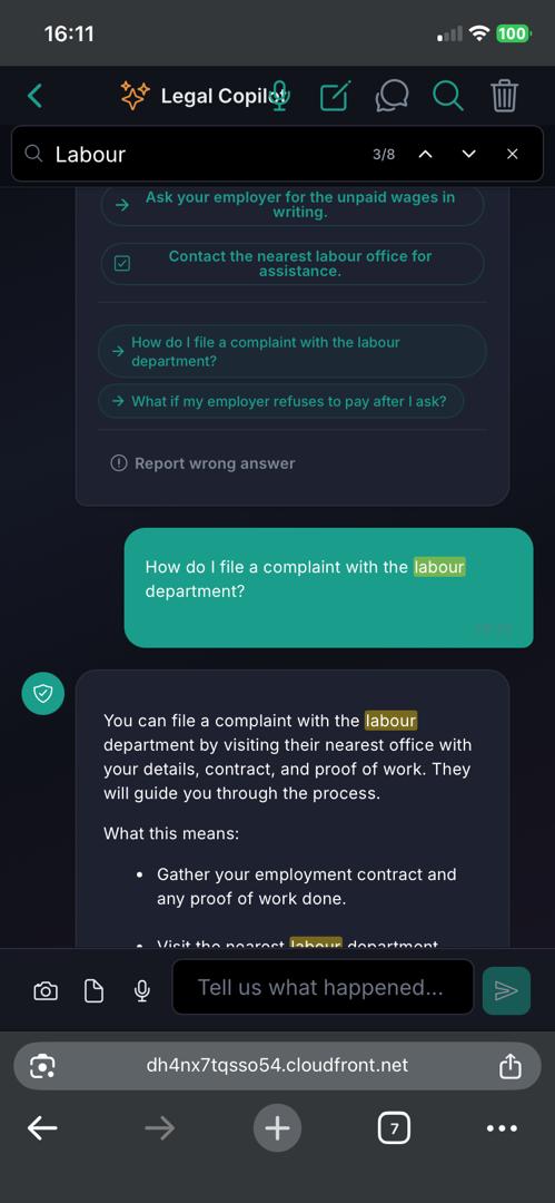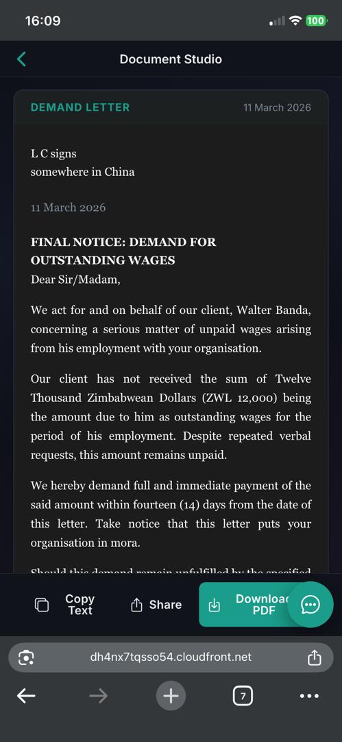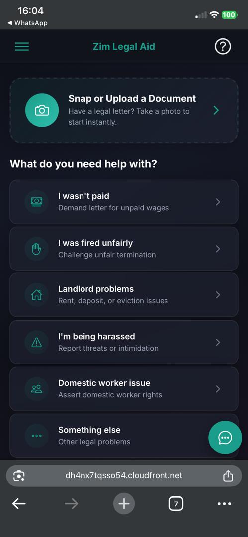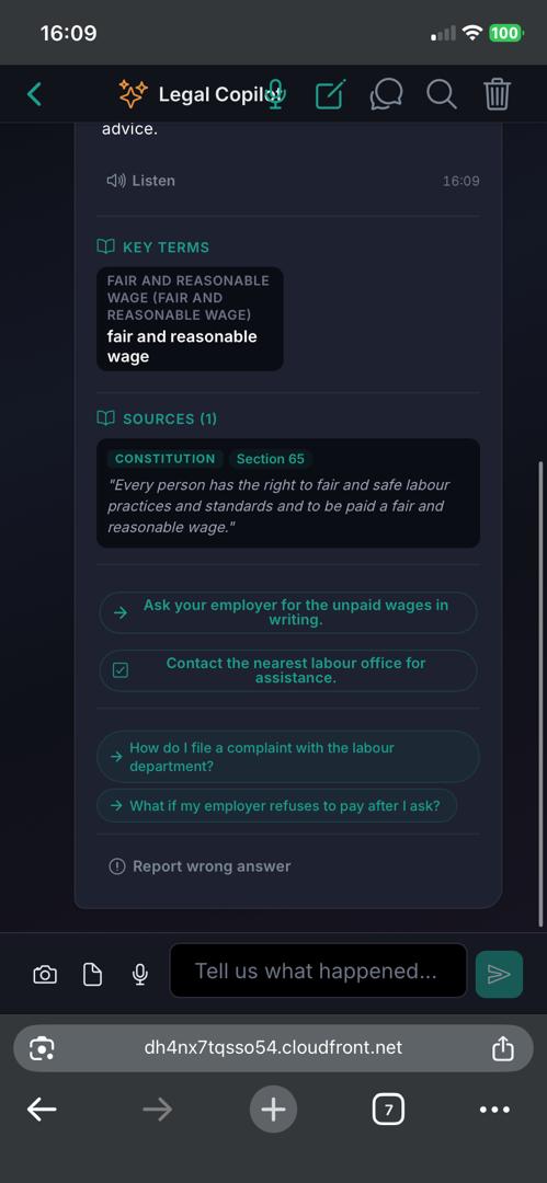 In Zimbabwe, over 80% of the population cannot afford a lawyer. Workers go unpaid, tenants face illegal evictions, and domestic workers are exploited—but most people don't know their rights or how to take legal action. The few legal aid organisations that exist are overwhelmed, and the barrier isn't just cost—it's language, literacy, and knowing where to start. We asked: what if AI could be the legal aid office that's always open, speaks your language, and puts a real legal letter in your hands? That's Mutemo Copilot.