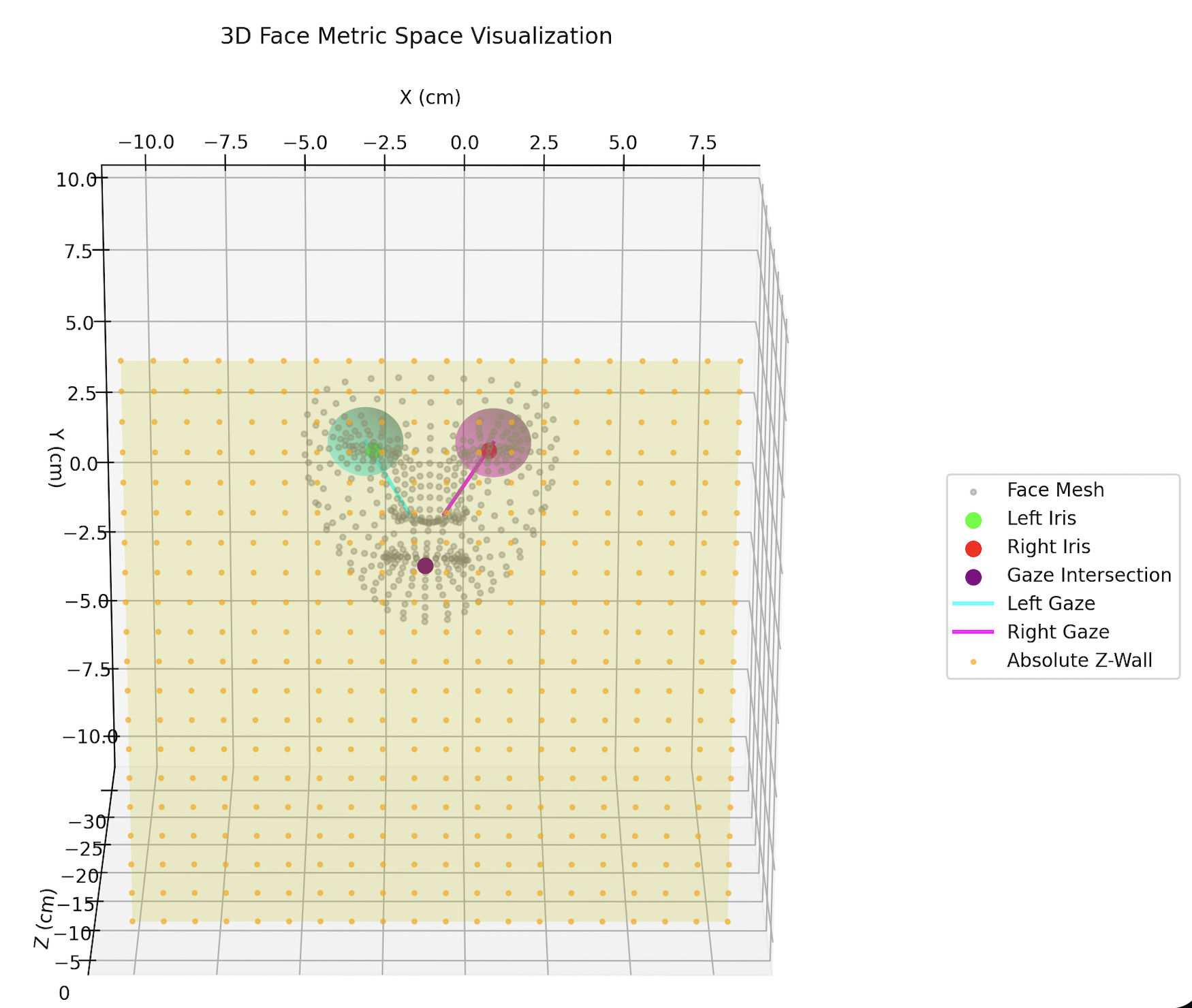 3D Gaze Estimation: We projected the 2D iris landmarks onto a mathematically modeled 3D eyeball (assuming an average eyeball radius of 1.2 cm) using exact line-sphere intersection. By calculating the vector between the center of this 3D eyeball and the surface of the iris, we generated a true 3D gaze ray.