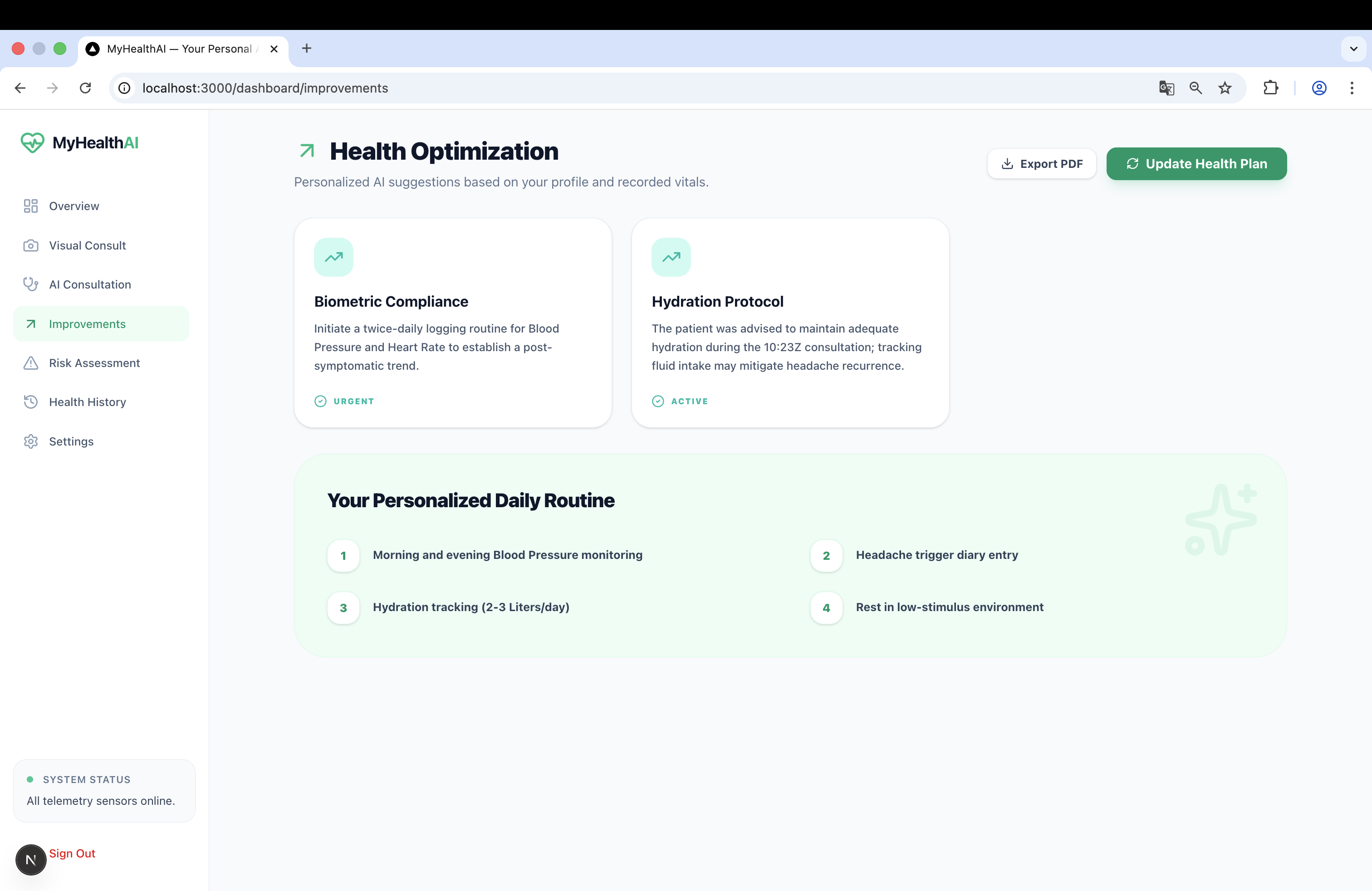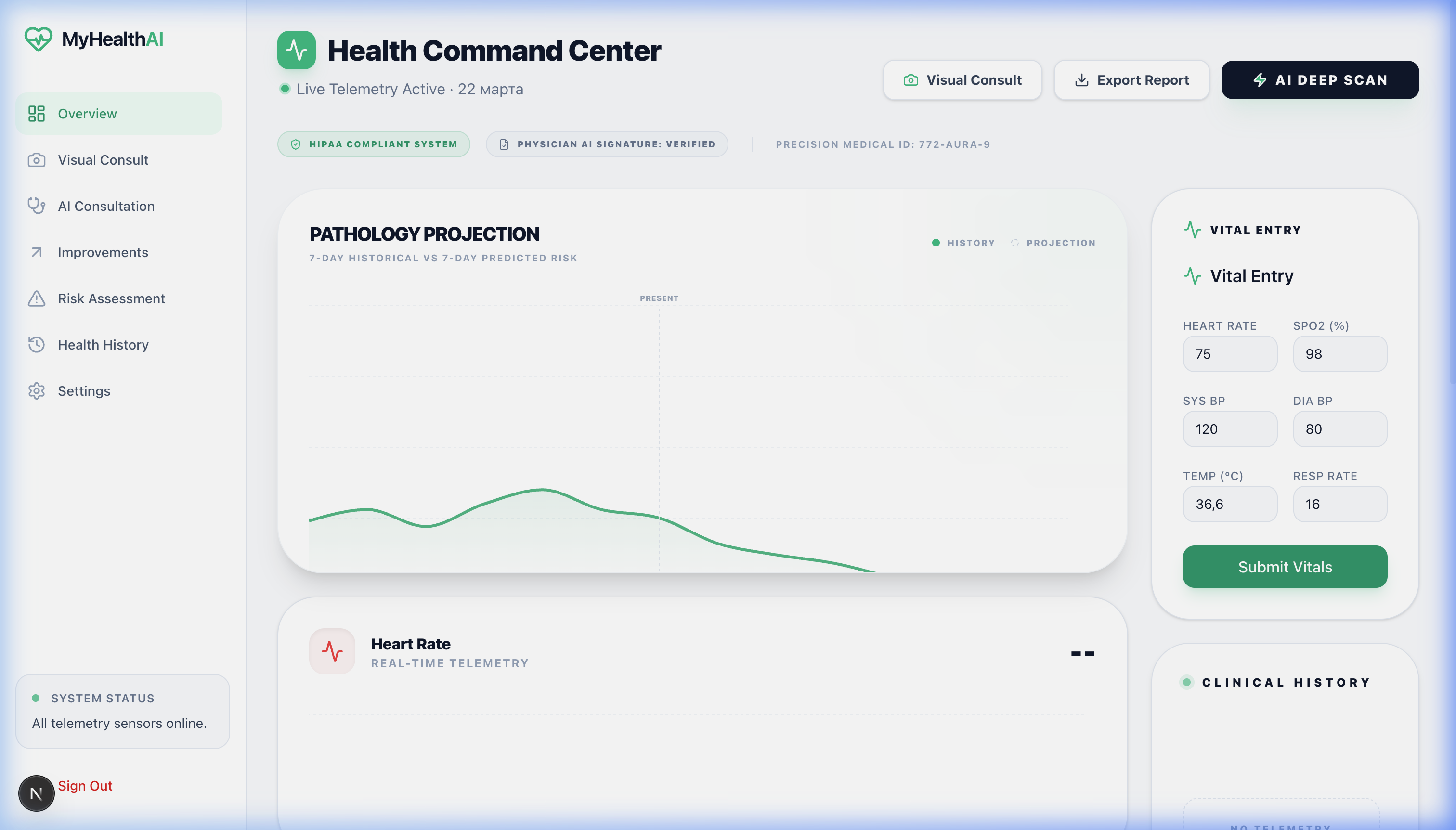 Our vision is to integrate MyHealthAI directly with wearable hardware (smart rings/watches) to move from reactive consultation to proactive life-saving alerts. We also plan to expand our clinical grounding to include specialized pediatric and geriatric datasets, making Dr. Aura a truly universal family medical companion.