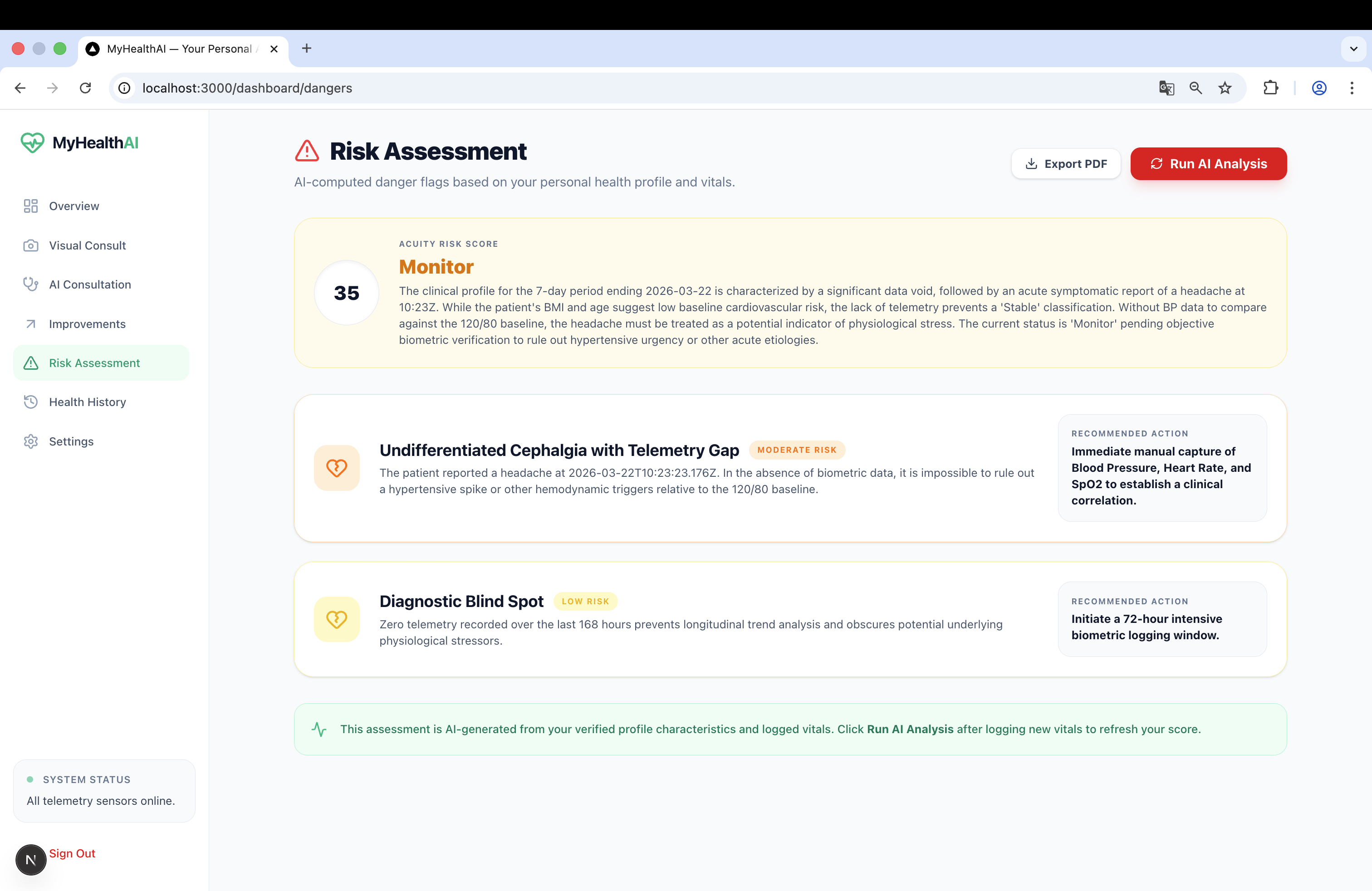 - Deterministic Risk Scoring: A mathematical engine that assigns "Stable", "Monitor", or "Critical" status without relying on LLM guesswork.