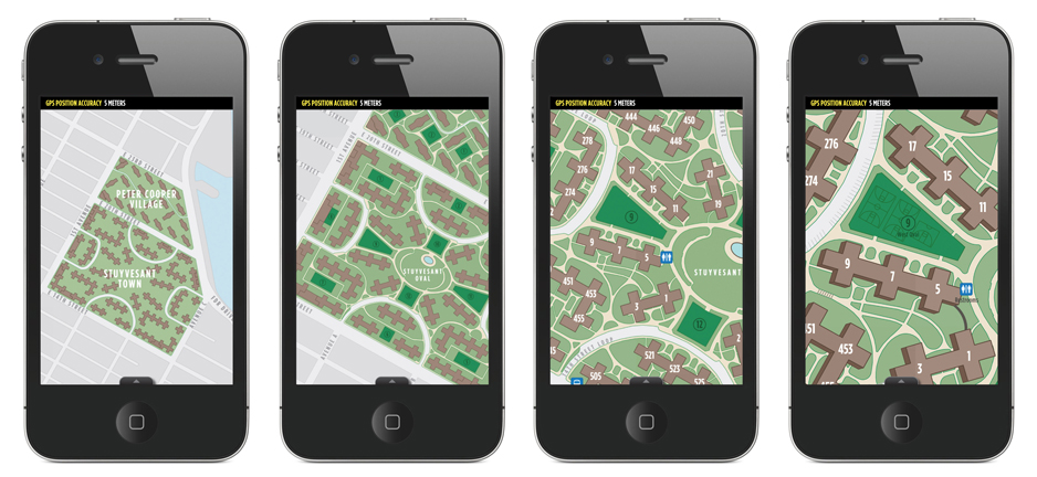 myNav: PCV/ST is a handheld navigation application specifically designed for residents, visitors, and workers of Peter Cooper Village and Stuyvesant Town in New York City. This application untangles the mess that is PCV/ST and allows any user to navigate the complex with ease. Using multiple forms of navigation including a traditional map, augmented reality, and a map the auto-orientates in realtime, this application appeals to all users. This app allows for realtime directional routing on a complex network of pathways from either your current location within the set zone or from any two locations within the complex. Additionally, this application features handicap accessible routes. If you are not located on PCV/ST, activate the 'Test Mode' in 'Settings' to test any of the features. Features: