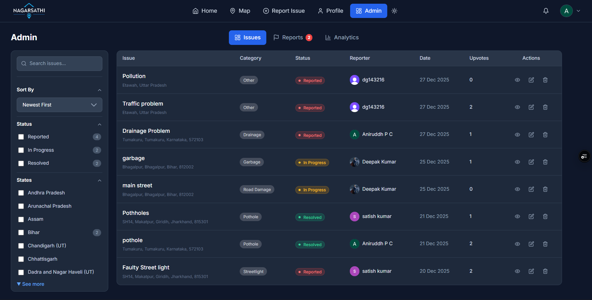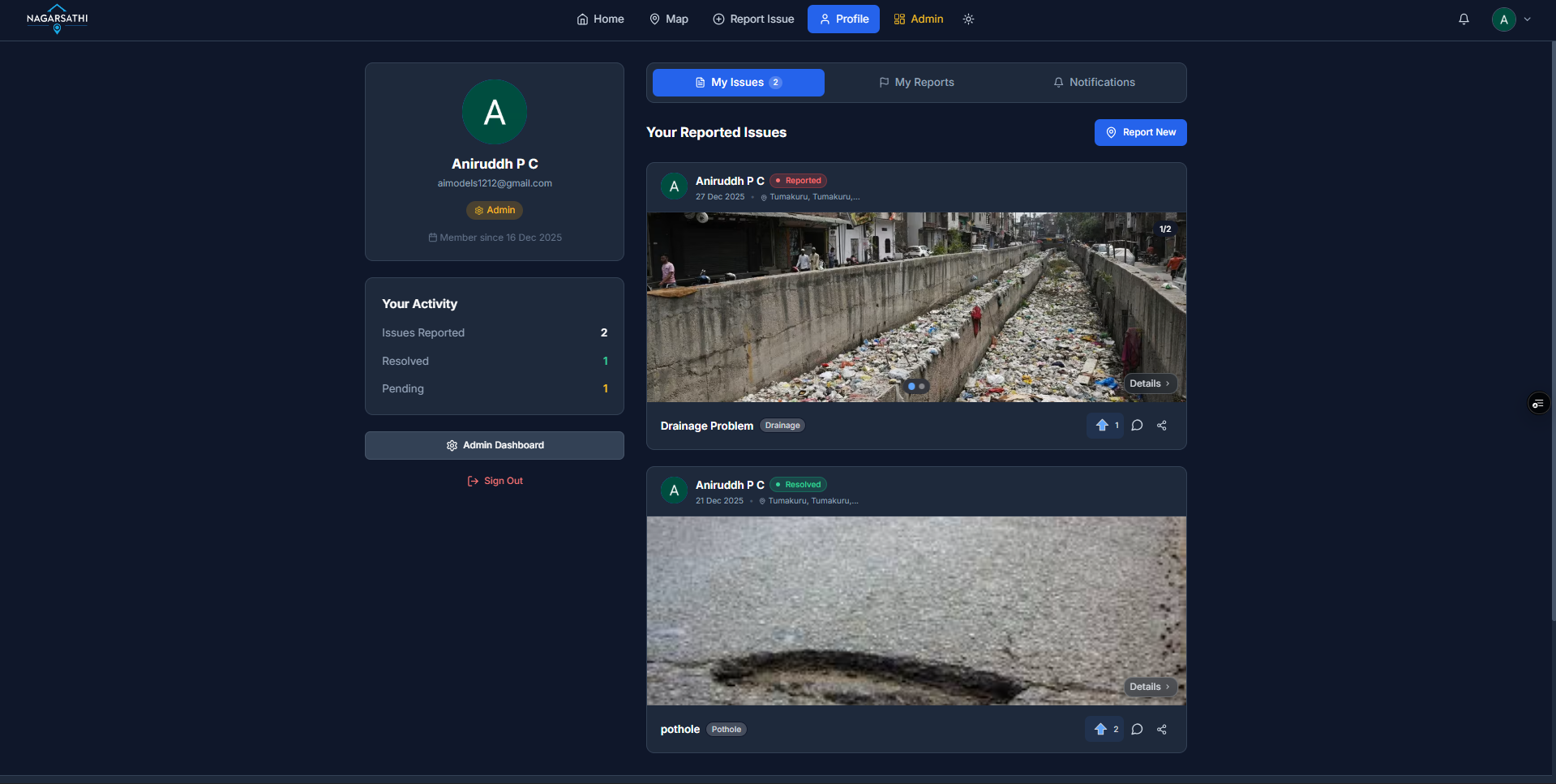 Nagar Sathi is a social-media powered civic issue reporting platform designed to improve transparency, accountability, and citizen participation in urban governance.