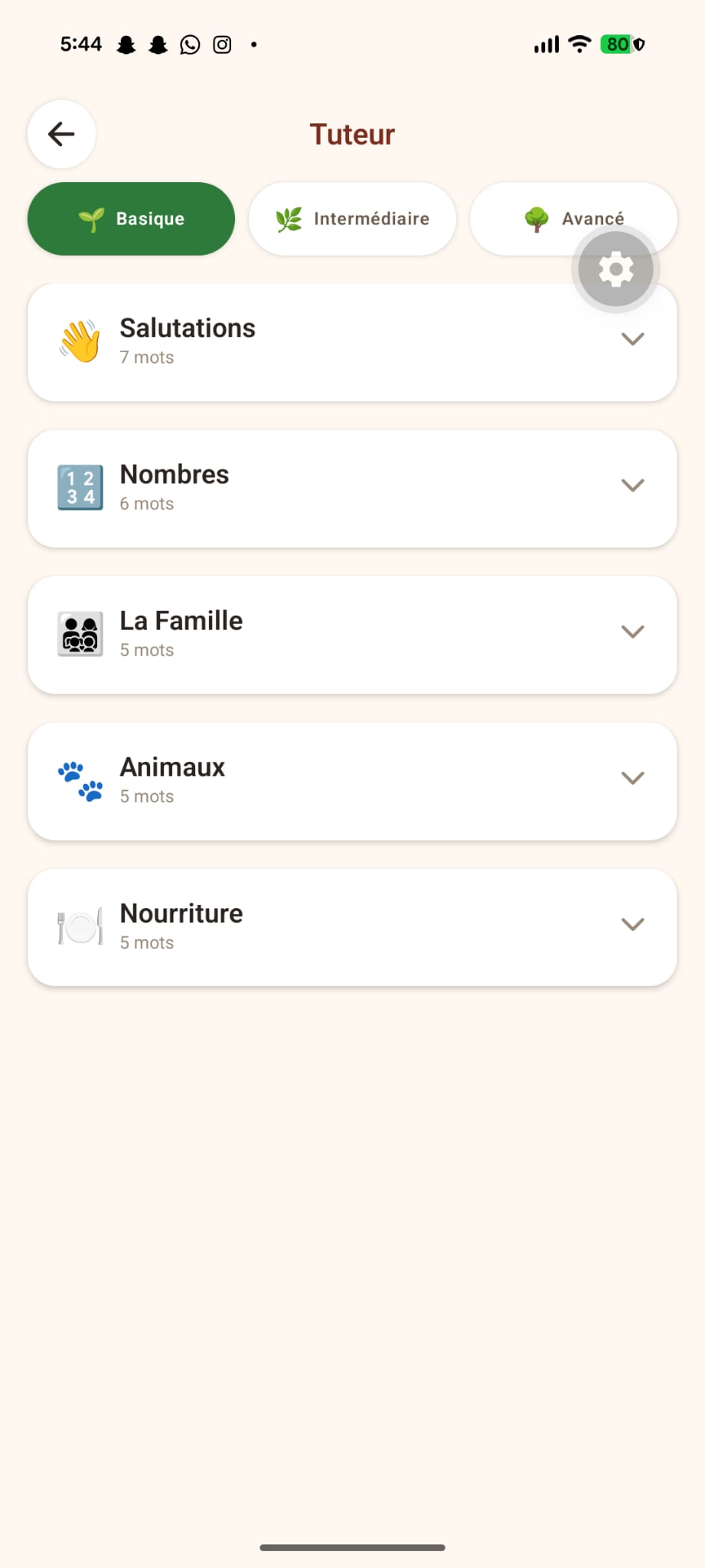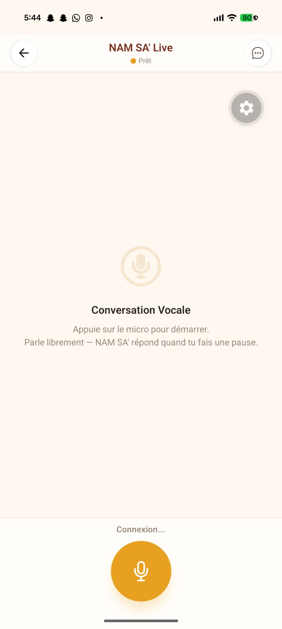Mobile: React Native + Expo SDK 55 with 6 screens, bilingual FR/EN interface, custom TTS service, silence detection for voice recording, and a design system drawn from the NAM SA' logo colors (Maroon, Sun Gold, Forest Green, Cream).