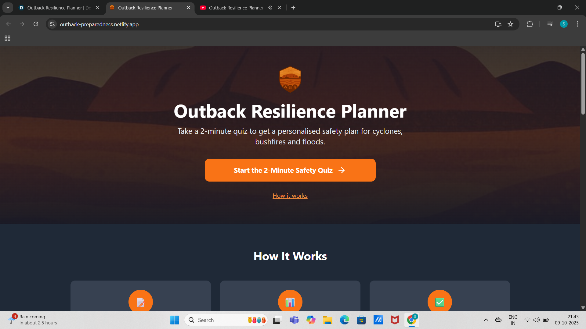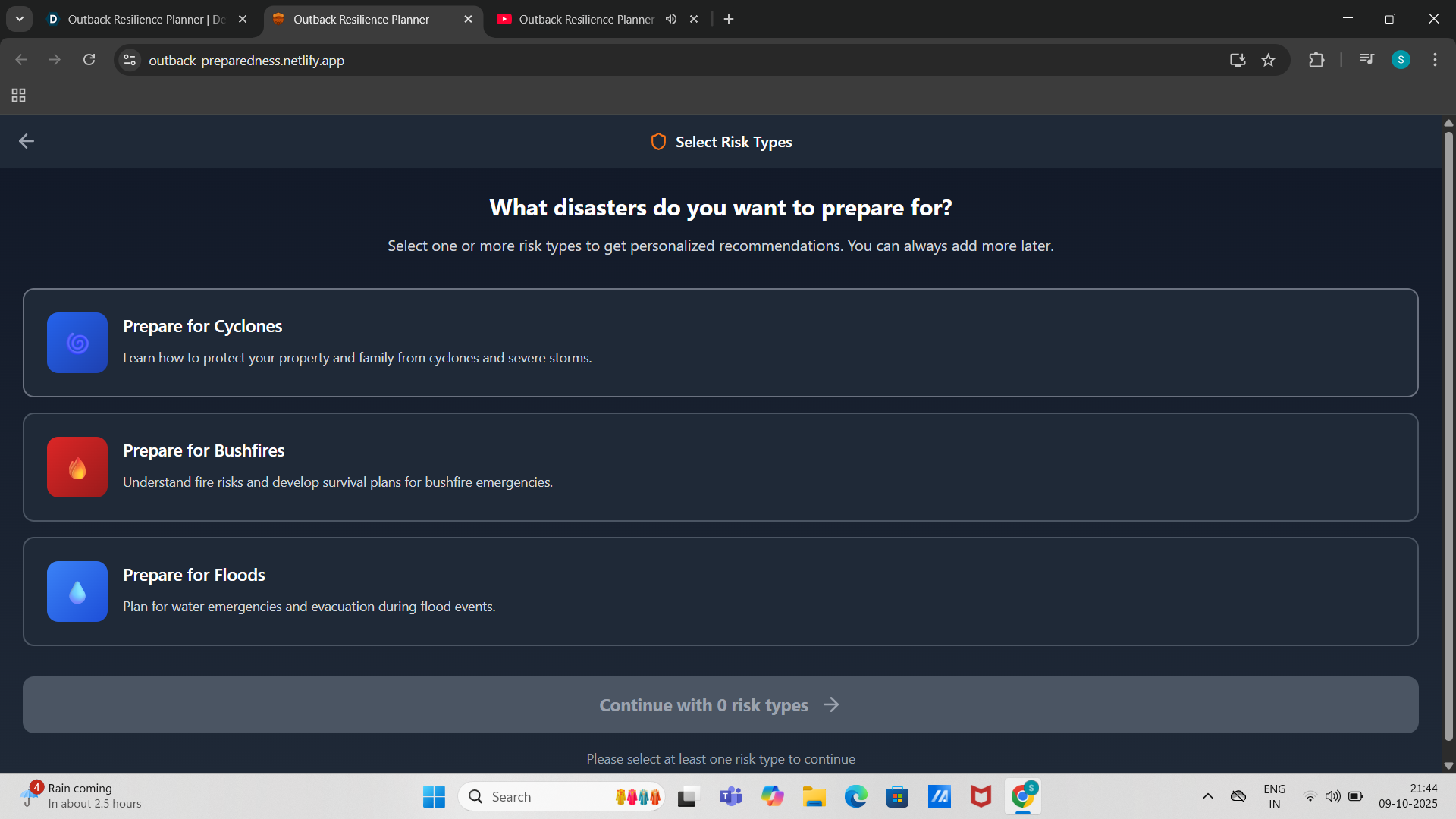 Outback Resilience Planner is a fast, easy tool where residents answer a few questions about their household, property, and preparedness.