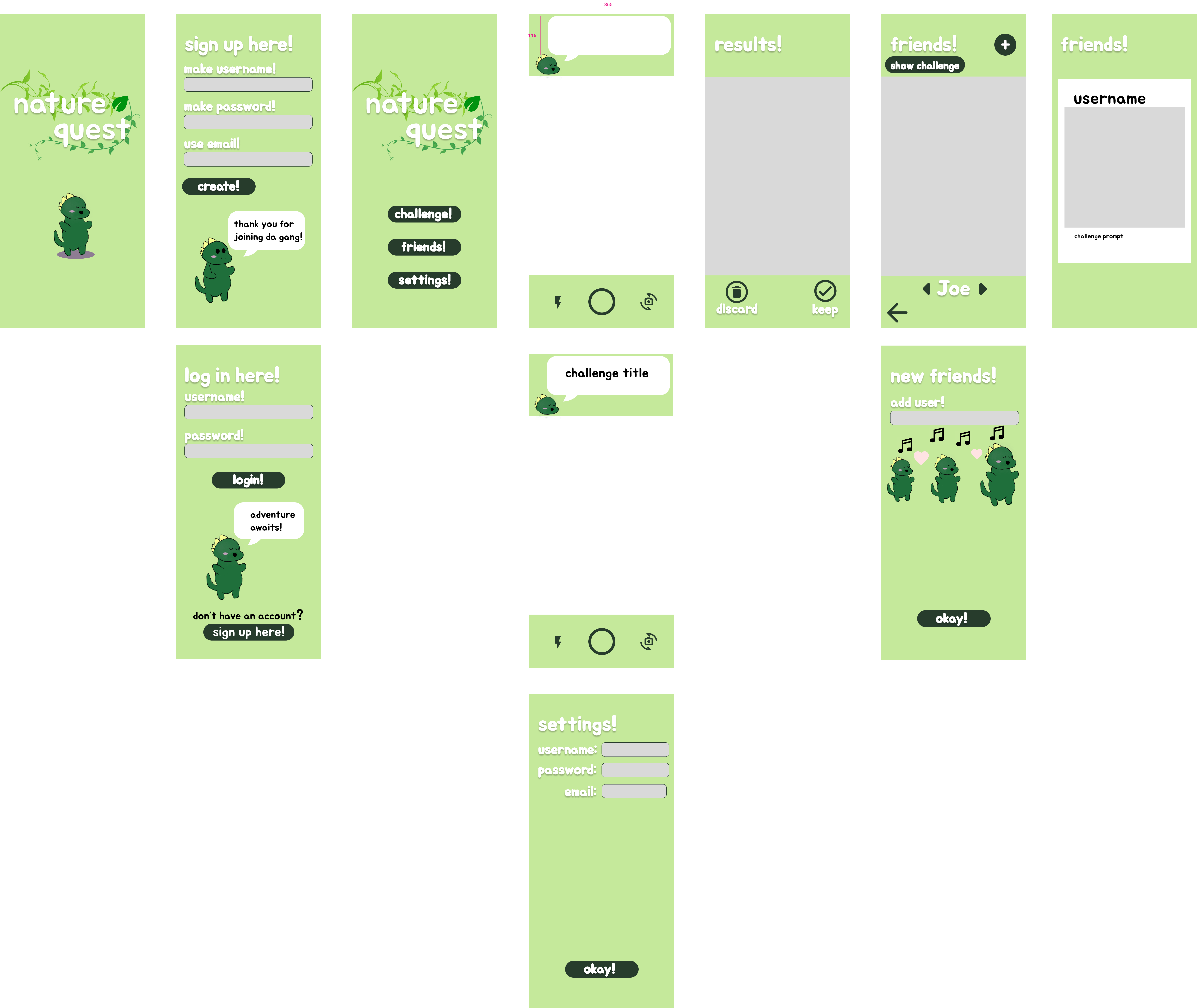 One of the most popular forms of social media involves snapshotting one’s life, whether the event is a milestone in an individual’s life or a small moment the user may look back on and cherish. However, due to the rise in addiction to technology and after-effects of the coronavirus pandemic, many individuals today lead a rather sedentary lifestyle in contrast to the active lifestyle our relatives and ancestors experienced for many generations. To amend this issue, our team aimed to create software that would rekindle our connection to nature and to our communities. We realized that it's easier to connect with our surroundings when given concrete goals that feel tailored to our environment, but it's difficult to automate that kind of personal touch at scale. With the advent of Large Language Models, we realized they presented an opportunity to facilitate the connection to nature. With NatureQuest, we wanted to use the phone and its ability to capture photos and social media as a personalized means to encourage interaction between friends and the environment.