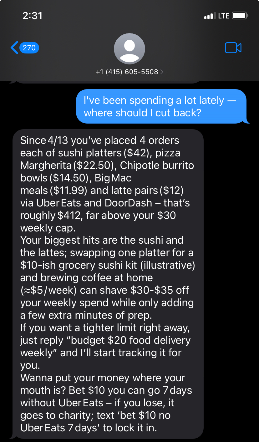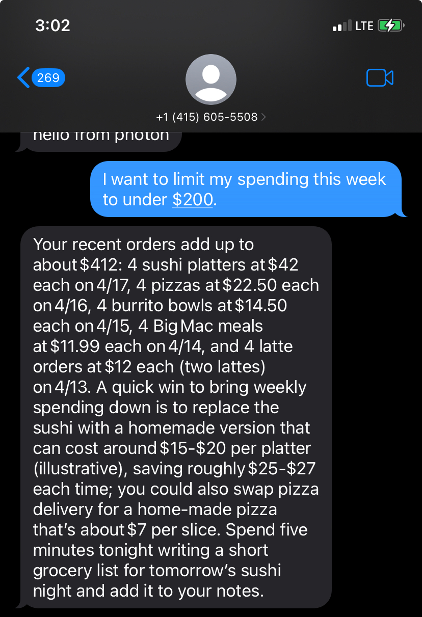 - Photon Spectrum : Used to integrate the AI directly into iMessage, removing the "app friction" that usually kills budgeting habits.