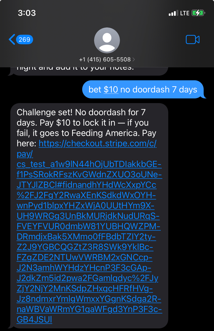 - Every.org : The held Stripe payment is captured and automatically donated to a charity (default: Feeding America) via the Every.org API. The user's money goes to a good cause instead of just being a penalty!