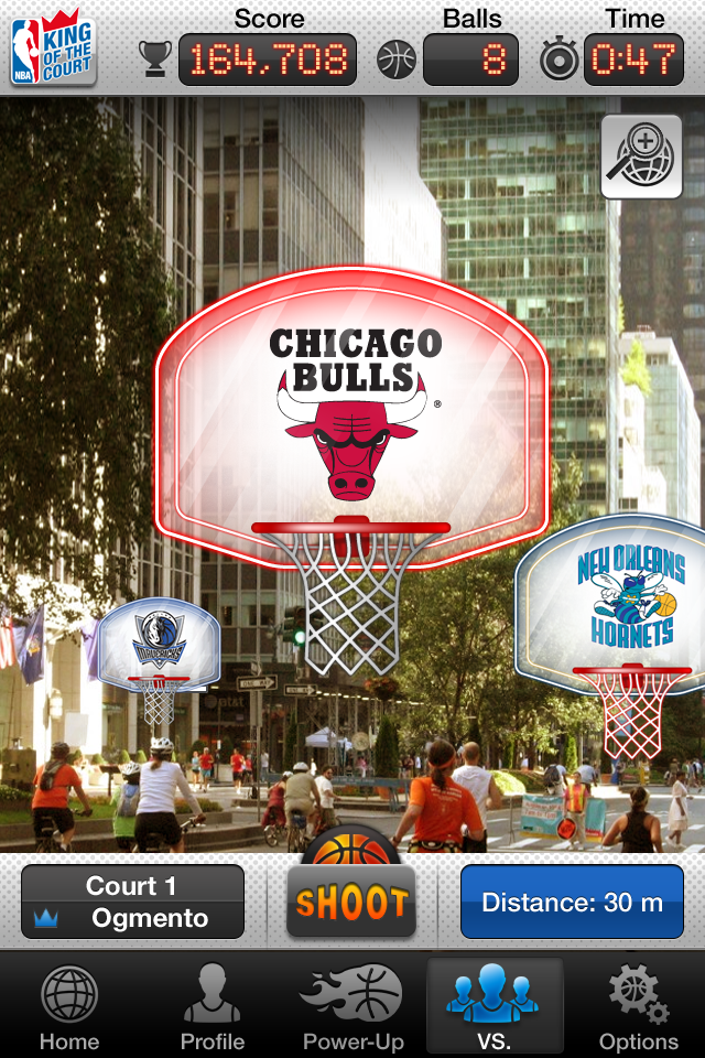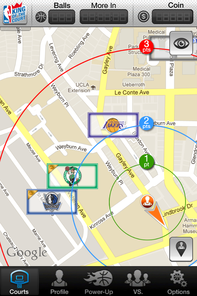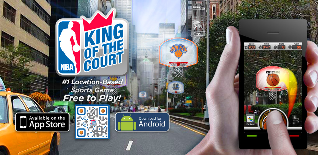 NBA: King of the Court is the first mobile game to combine a top sports franchise (NBA) with location based technology and augmented reality into one overall dynamic game experience. Players compete to become the “King” of virtual basketball courts placed in real-world locations all over the world. In addition, the game’s dynamic updates allow for real-world synchronization for team events, local campaigns, contests and more. The game sets the bar on what becomes a true social sports game.