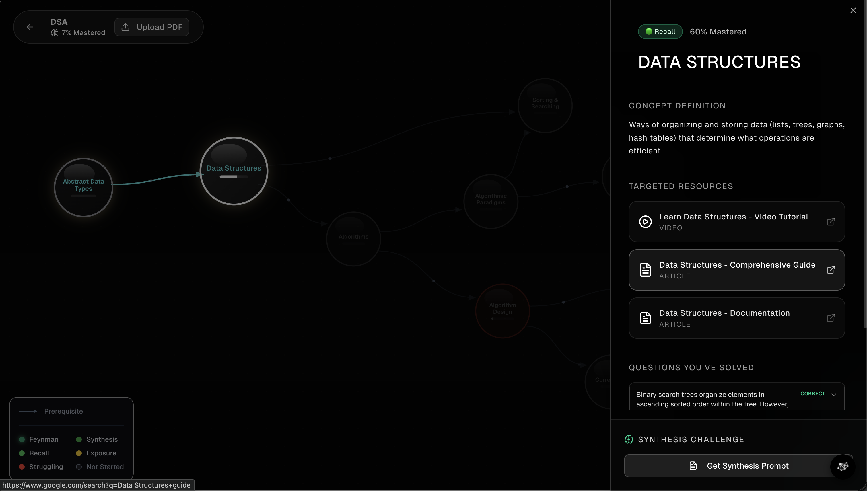 Instead of a static list of bookmarks, you get a dynamic, visual "brain" that grows in real-time. When you're on a page, the extension identifies the "nodes" you're currently covering. If you want to check your progress, you can highlight a specific section to trigger a quick mastery check. Your graph then updates based on your performance—shifting from a hazy yellow to a solid green as you prove you've actually locked the concept in. It’s a passive tracker that gives you an active edge, showing you exactly what you know and, more importantly, what you’ve missed.