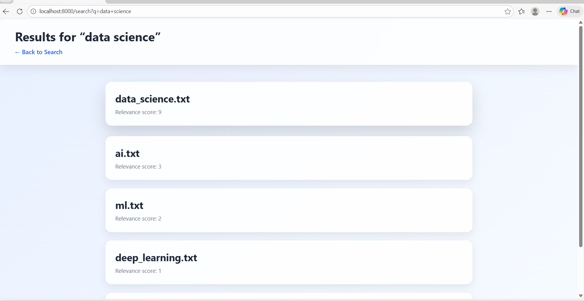 - Building a "custom search engine" using tokenization and ranking