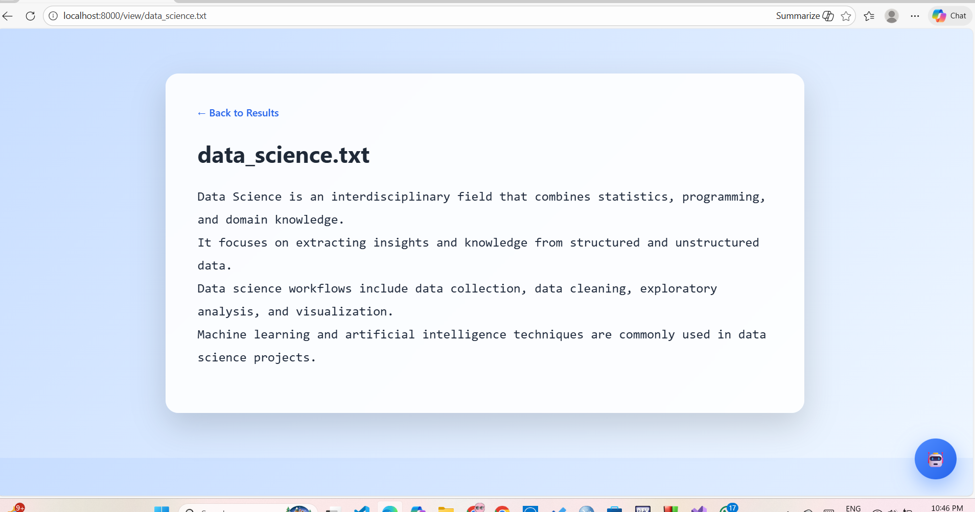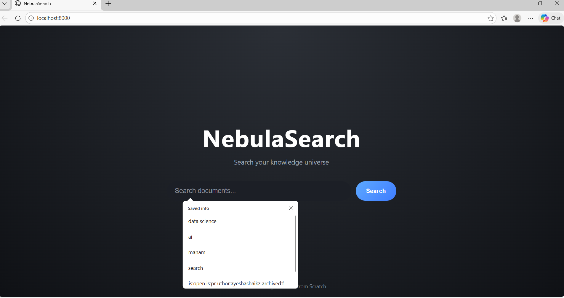 NebulaSearch demonstrates how AI can be used responsibly and effectively by grounding responses in user-provided data. By combining search, local AI, and clean UI design, this project aims to improve how students and researchers interact with their own knowledge base.