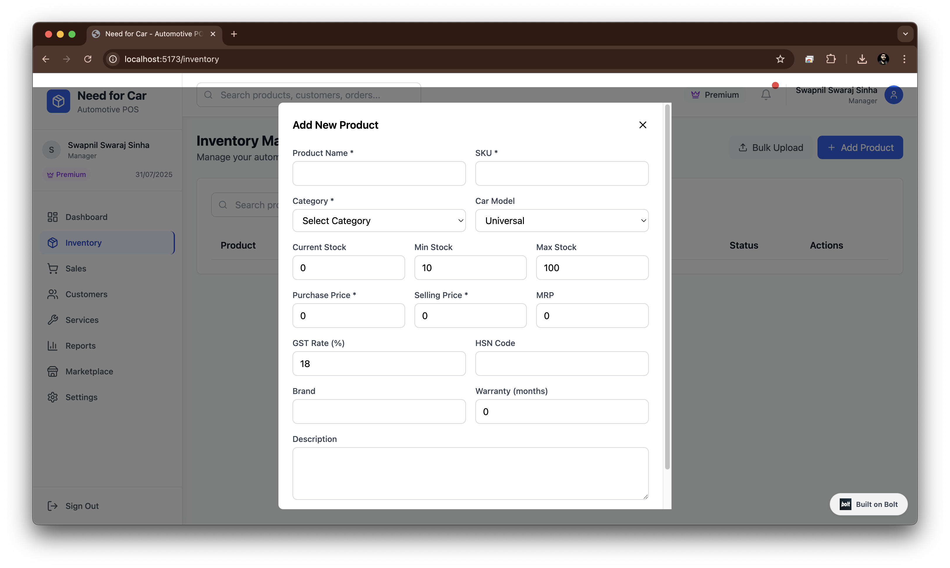 The idea for this project was sparked by observing the fragmented and outdated systems used by local car part dealers and modification workshops in India. Most businesses relied on manual registers or generic POS software that didn’t address their unique needs—especially inventory by car model, integrated supplier networks, or the growing demand for custom modifications. Our vision: empower these businesses with a modern, desktop-first platform that streamlines every aspect of their operations while embracing India’s digital transformation.