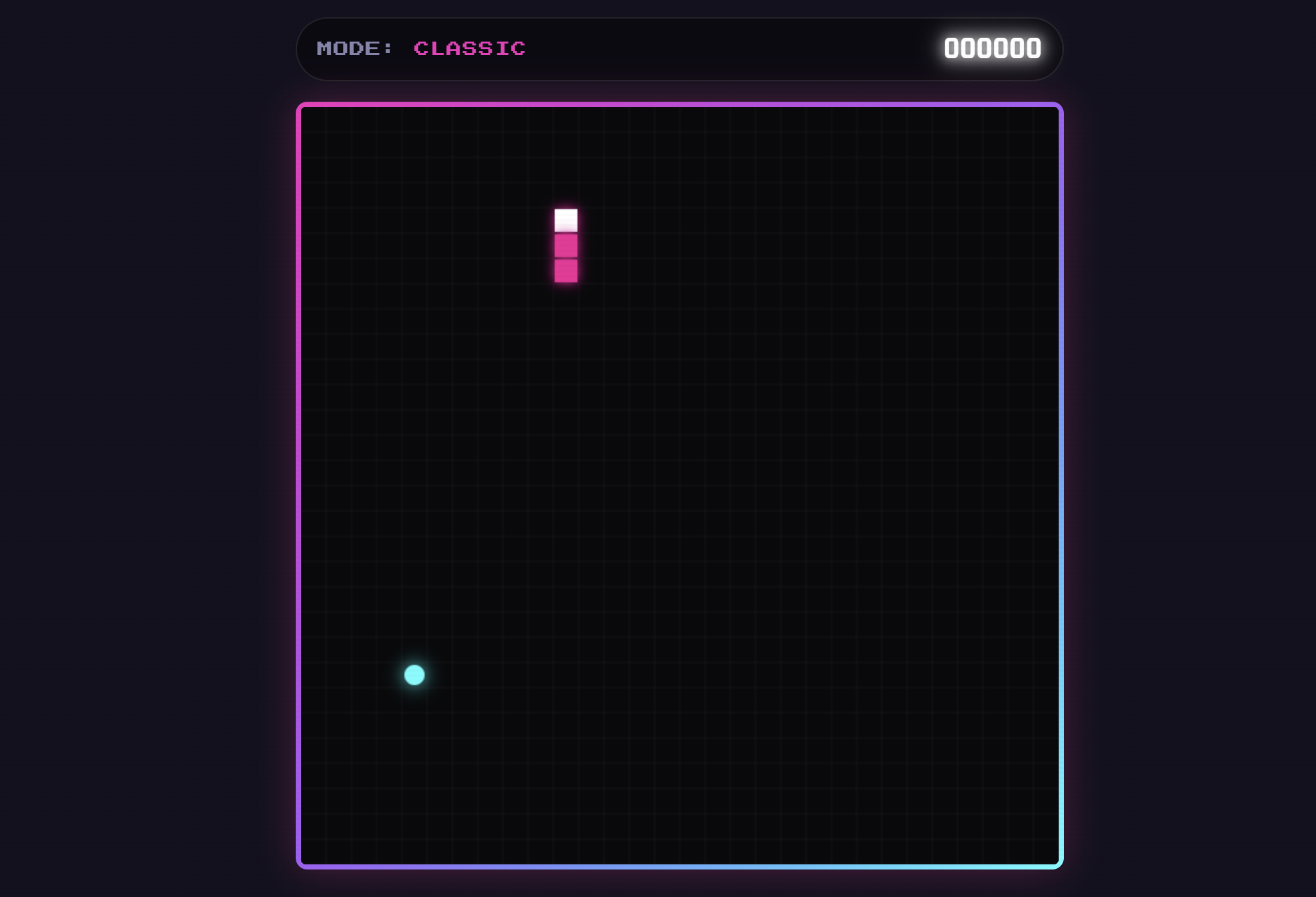 its a snake game in which a snake moves in a specific area and eats the food and gets bigger i made a additional mode too as bomb mode which spawns bomb in radomnly in the specific area with every 3-4 sec