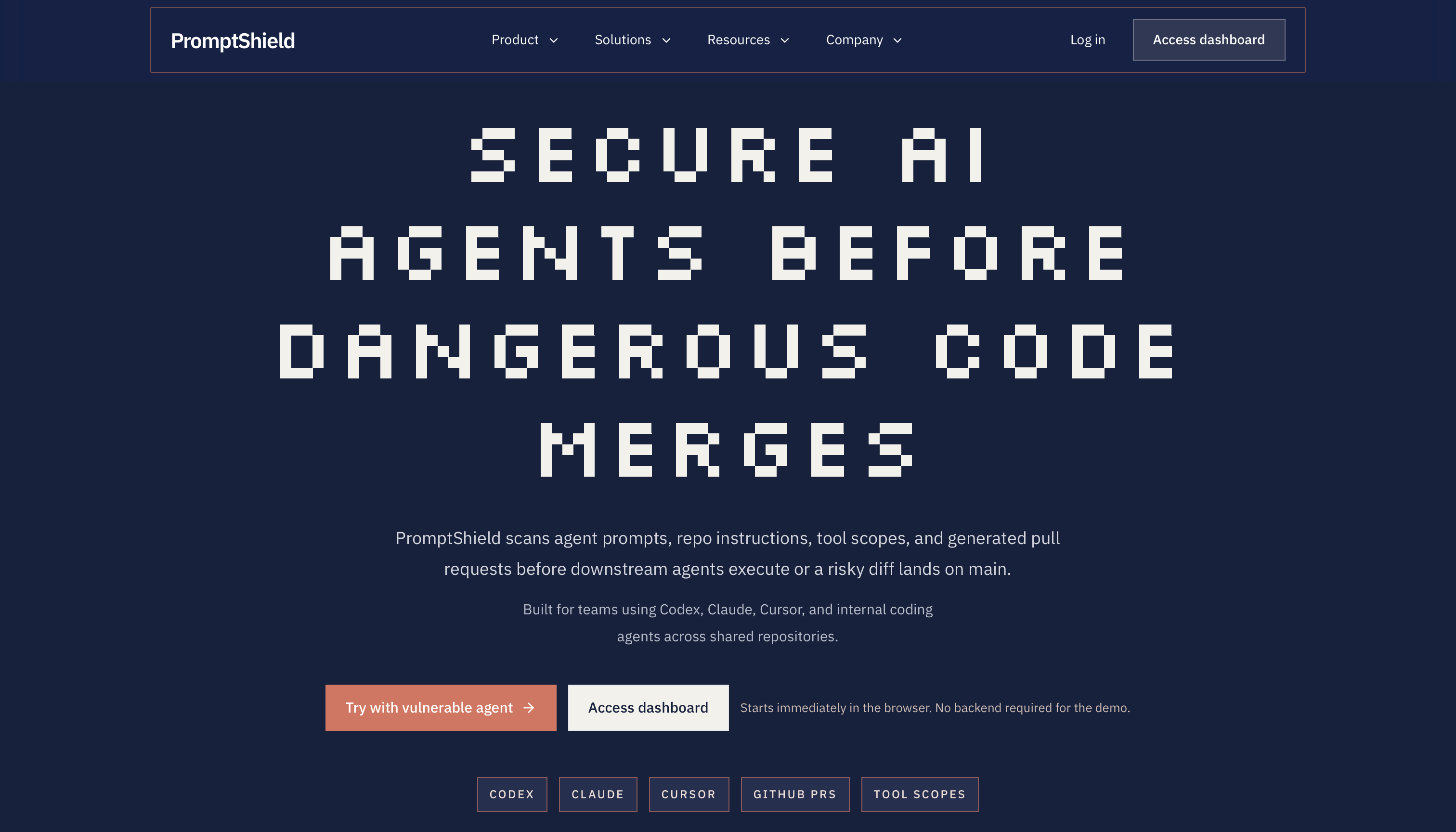 PromptShield is a security scanner that reviews pull requests for AI agent vulnerabilities. You connect it as a GitHub App or paste code directly, and it runs three layers in parallel: regex-based static rules, AST dataflow taint tracking, and a Gemini 2.5 semantic auditor. Every finding comes back with a CWE number, an OWASP LLM Top 10 (2025) category, an evidence snippet, and a one-sentence fix.