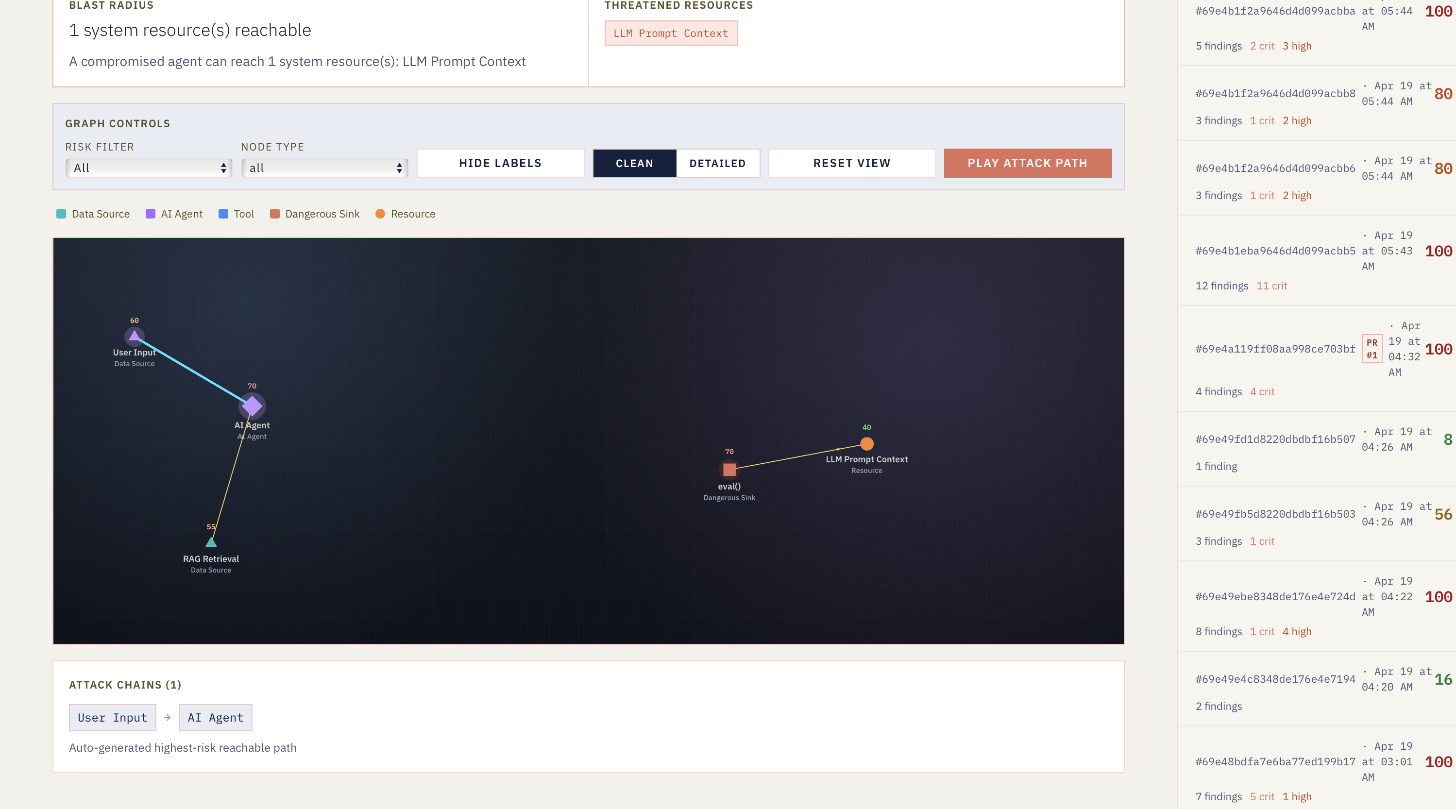 .cursor/rules/*,CLAUDE.md, andAGENTS.mdas first-class indirect-injection surfaces. - Expand the agent-exploit corpus past the current seed set by ingesting real CVEs and LangChain/LlamaIndex issue threads.