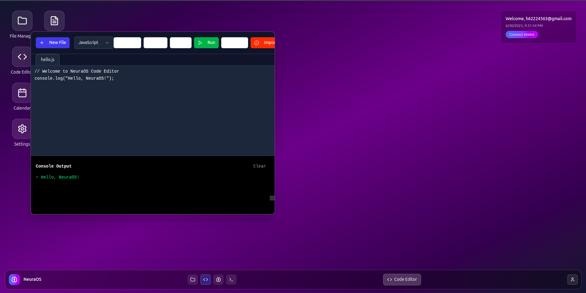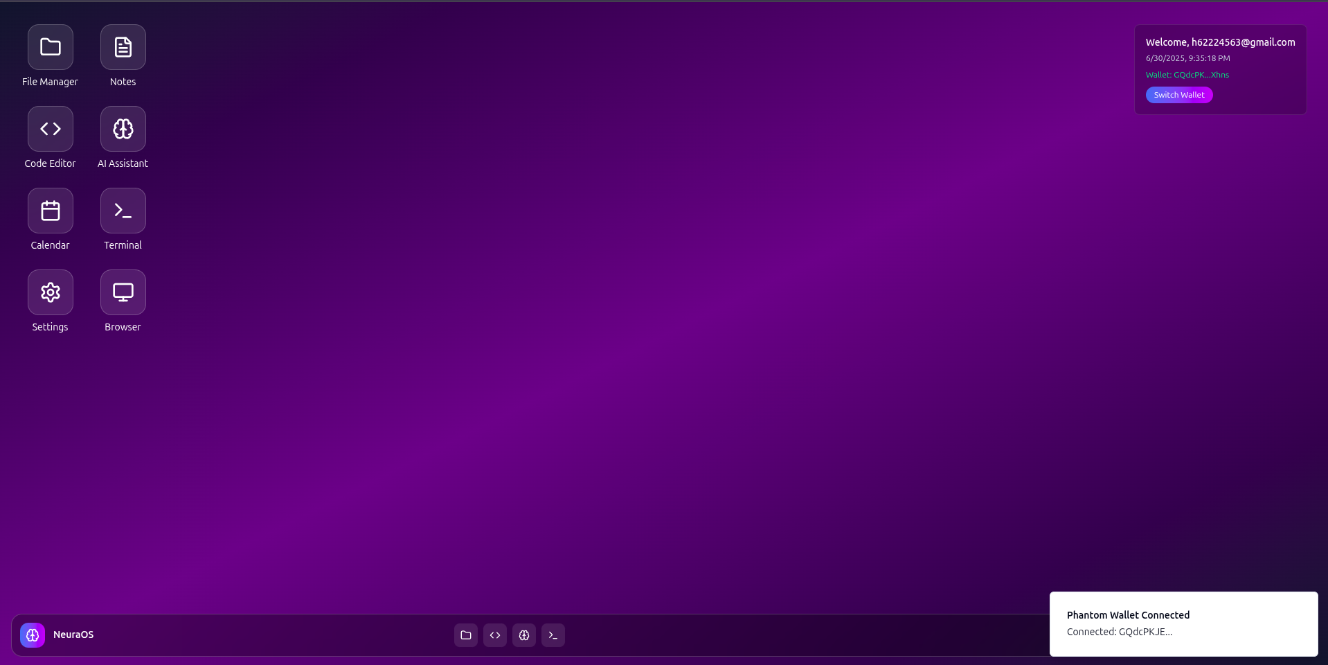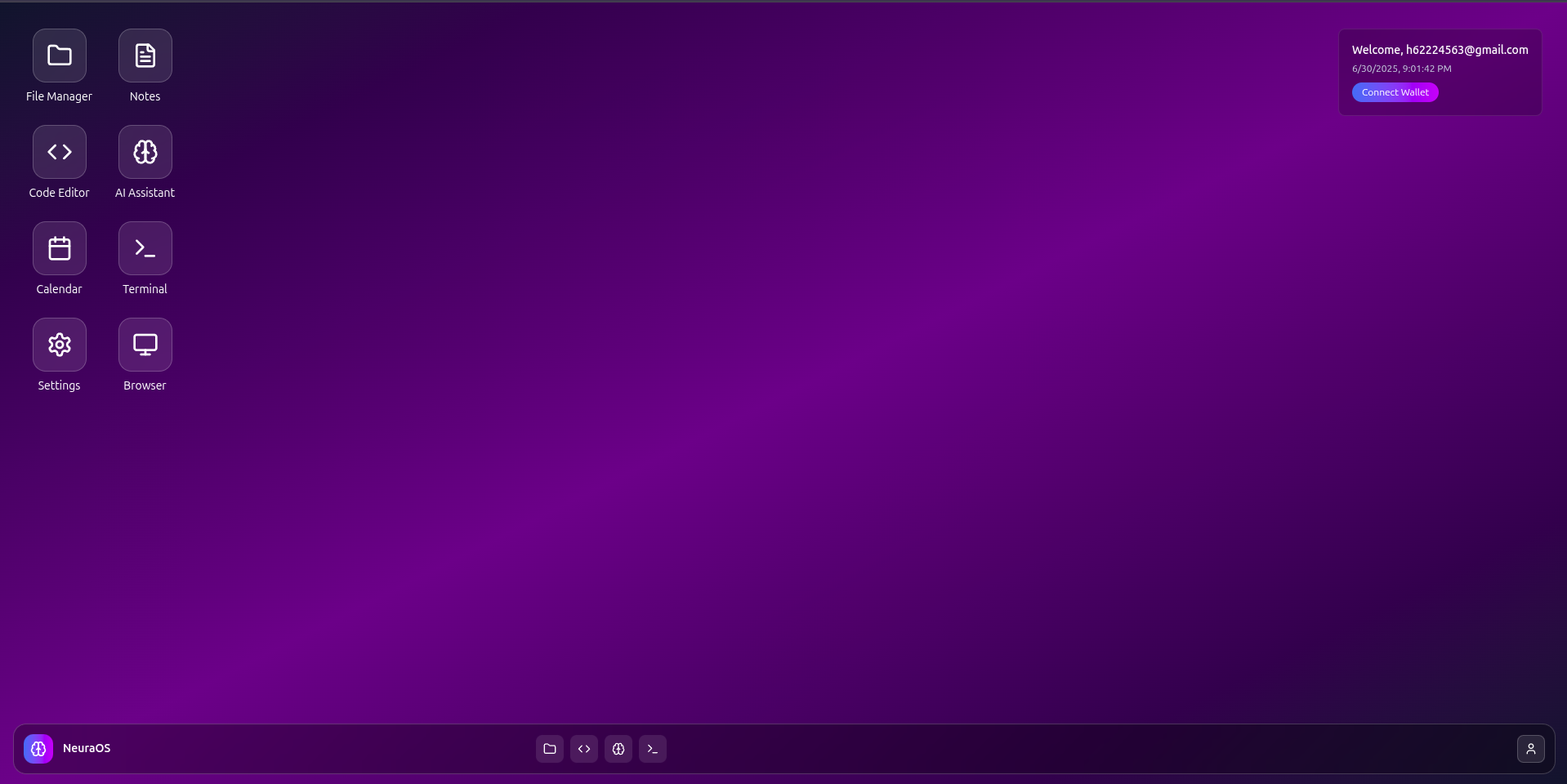 NeuraOS is a fully functional Web-based Operating System, powered by AI and blockchain, with: