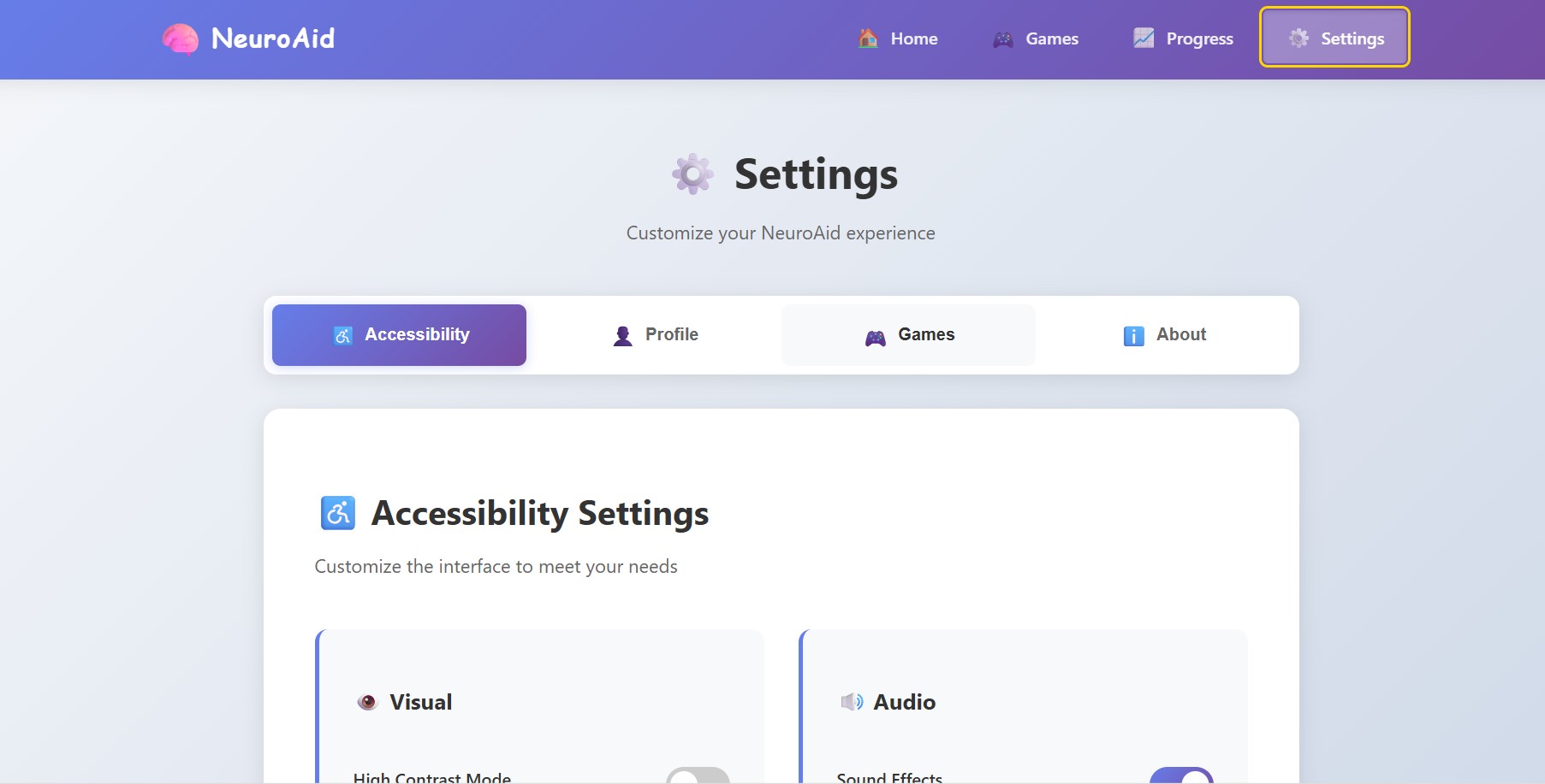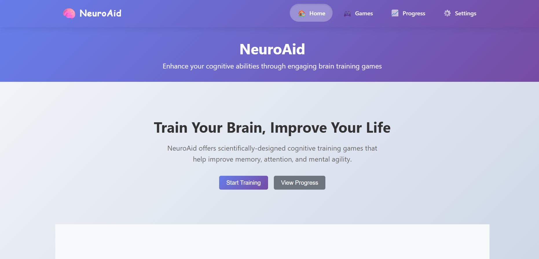 The inspiration for NeuroAid came from recognizing that cognitive training shouldn't be a one-size-fits-all approach. I wanted to build a platform that would celebrate cognitive diversity while providing meaningful tools for skill development. The idea was to create games that would be engaging enough to hold attention while being scientifically grounded in cognitive training principles.