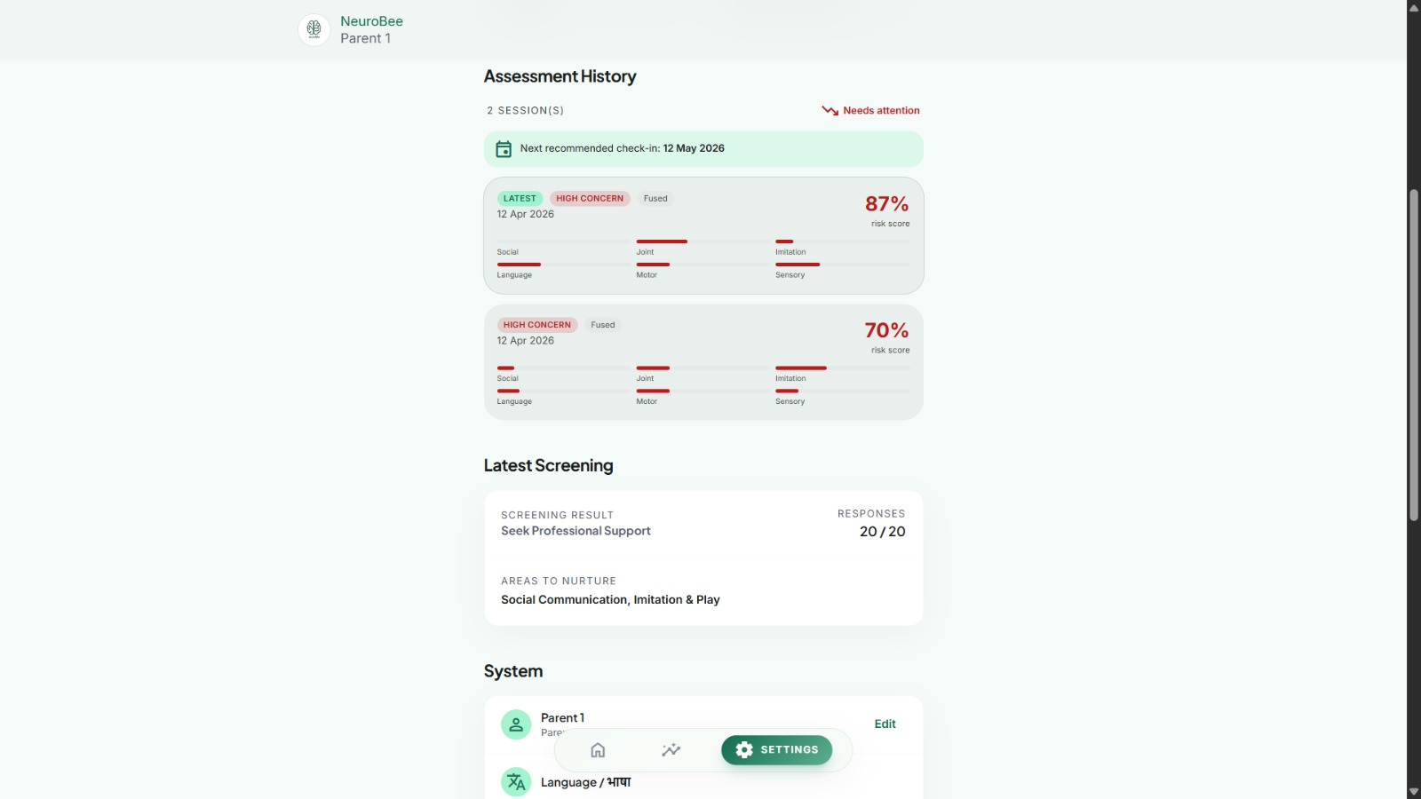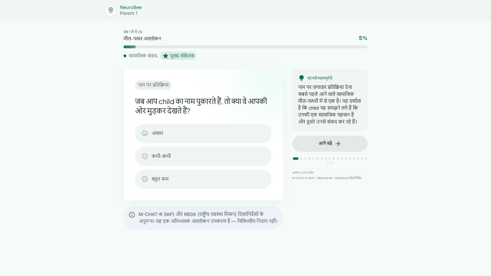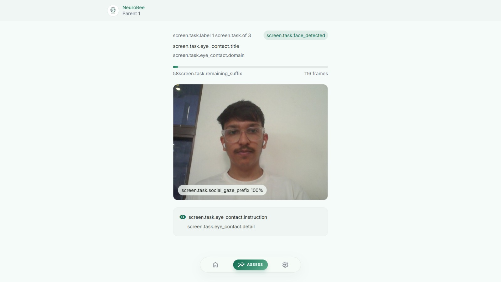 NeuroBee is an AI-powered early screening platform for neurodevelopmental disorders. It allows parents to conduct a 30-minute test at home, analyzing behavioral patterns, gestures, and visual cues.