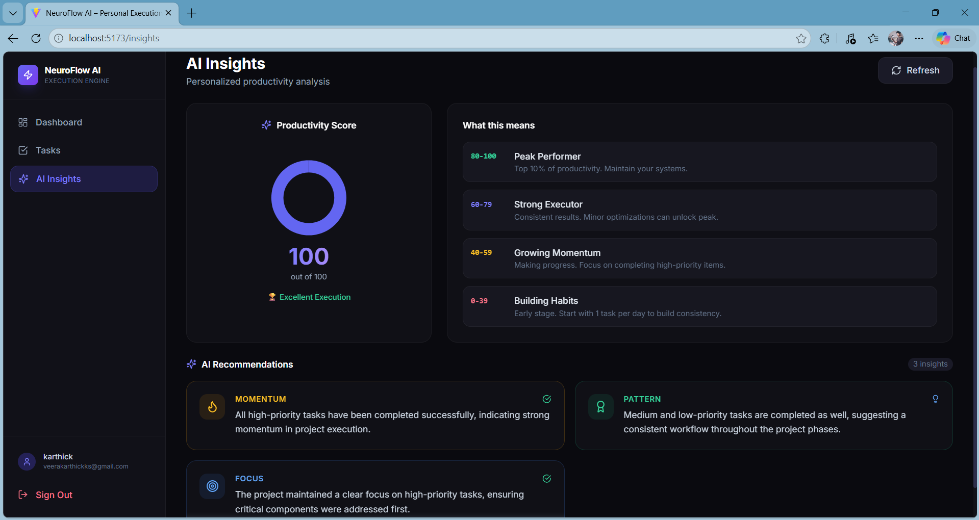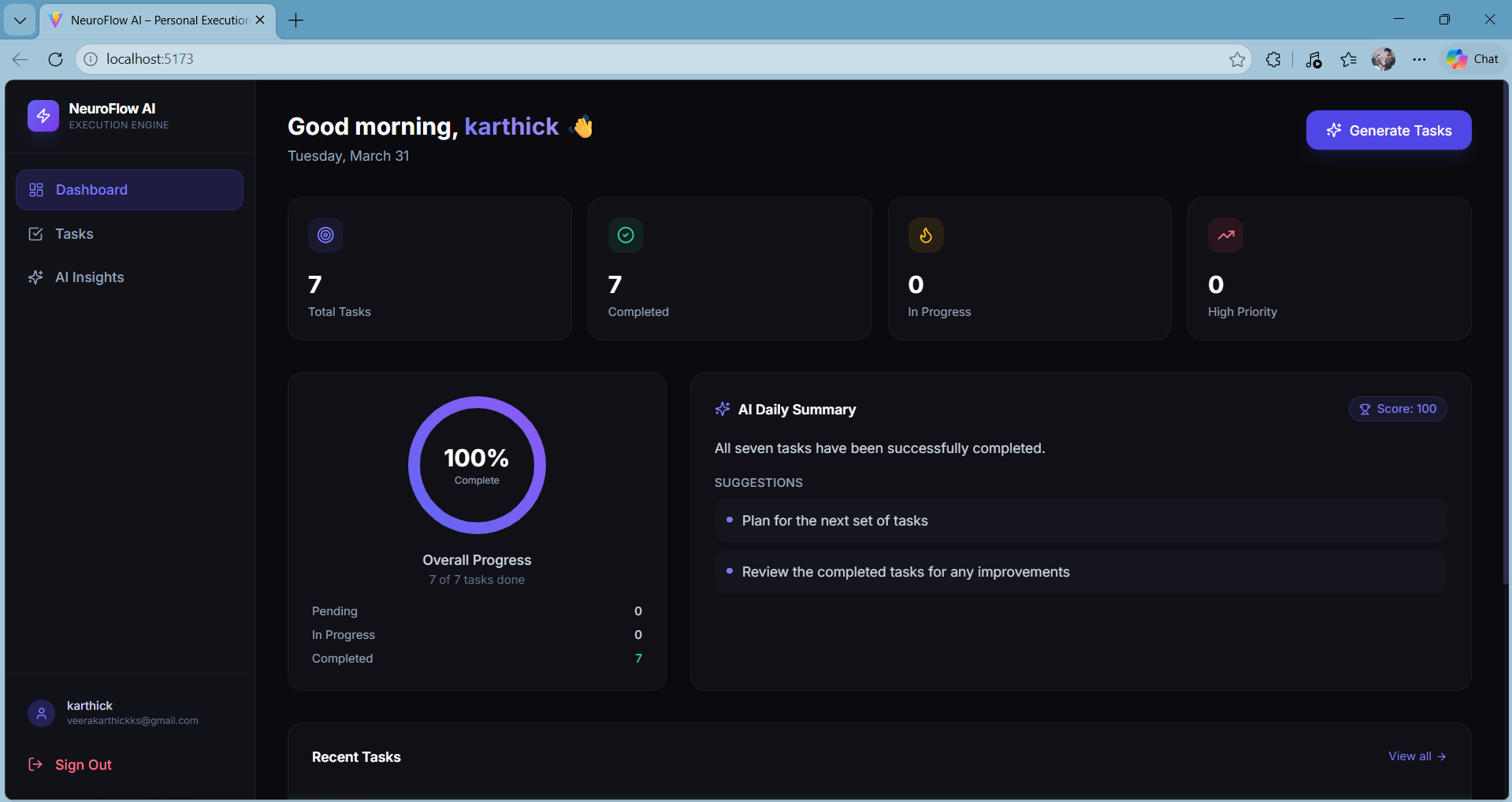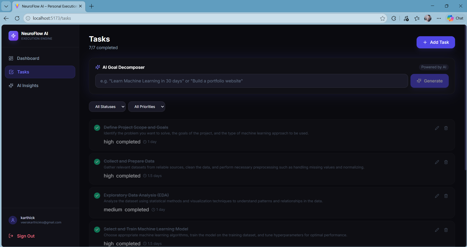 NeuroFlow AI is an intelligent execution engine that transforms goals into structured, actionable plans.