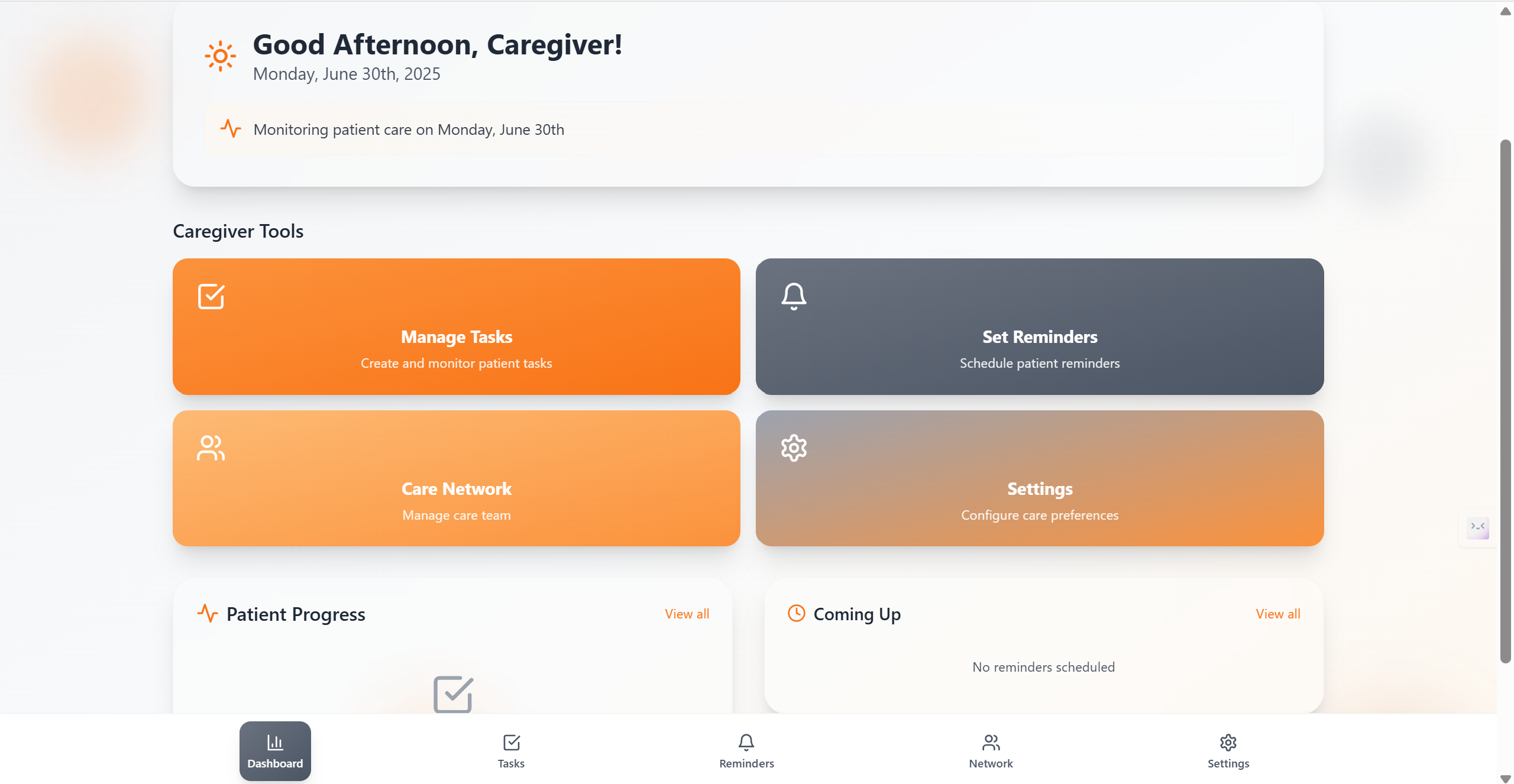 We used Bolt’s app builder to create a multi-screen, visually calming app with two core dashboards: one for the patient, and one for the caregiver. The caregiver can add tasks, reminders, hydration or medication cues — and they instantly sync to the patient’s view. The UI is designed to be clutter-free, with large buttons, soft motion, and colors that reduce cognitive load. We also included voice input and real-time syncing logic between the two user roles.