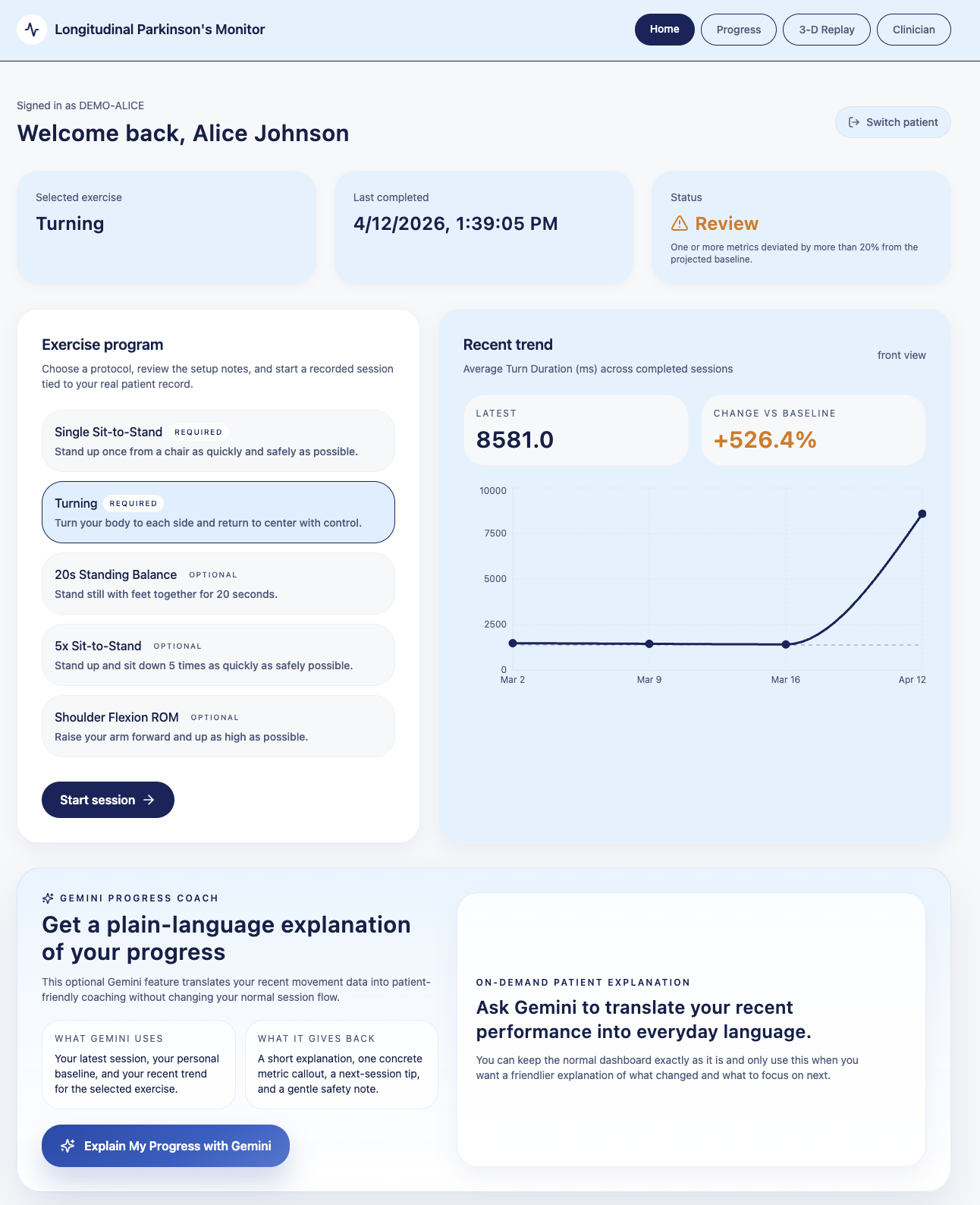One of the biggest challenges was distinguishing actual symptom progression from bad recordings. If a patient was not properly positioned in frame, the result could look like worsening movement when it was really just a setup issue. This pushed us to improve our start-position checks and guidance system.